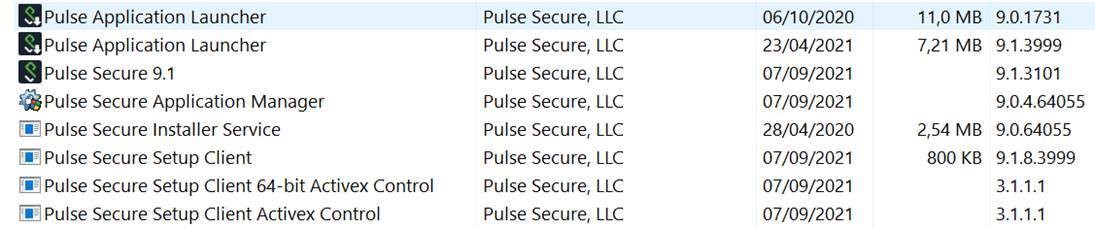 - Desinstale la versión actual de pulse: Panel de control – Programas y características. Busque todas las entradas con Pulse y desinstale todas ellas.