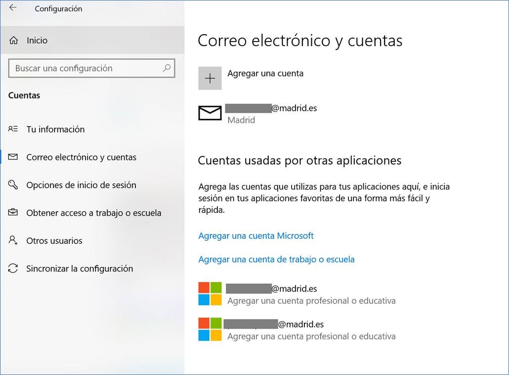 3.1 - Añadir la cuenta del Ayuntamiento en la configuración de cuentas de Windows.
