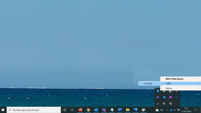El cliente Pulse Secure ya está instalado. Para conectarse seleccione en la barra de herramientas de Windows el icono de Pulse Secure.