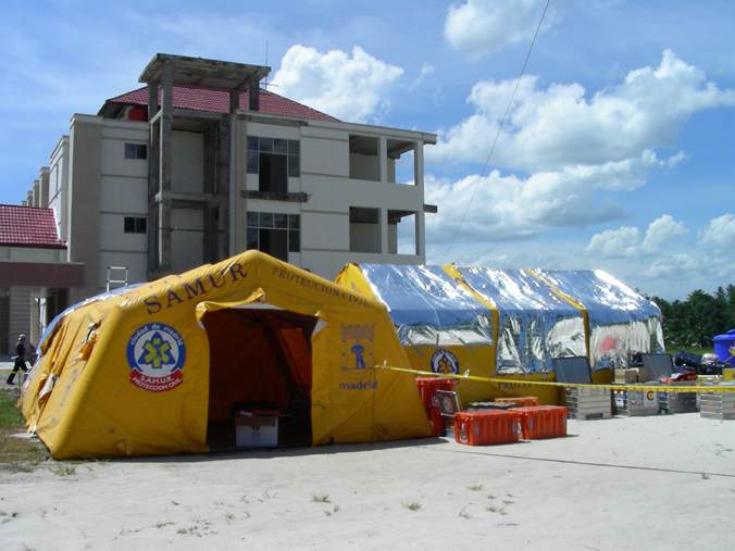 El campamento contó con todo lo necesario para que la expedición permaneciera esos días en unas condiciones óptimas de trabajo y descanso. Igualmente tanto médicos, enfermeros y técnicos se desplazaron diariamente, bien para colaborar con los sanitarios indonesios en sus propios centros de salud o para colaborar en el montaje de estructuras provisionales de campaña junto a colegios destruidos por el terremoto.