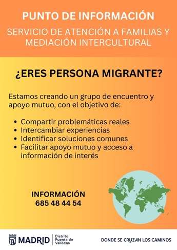Grupo de apoyo mutuo orientado a crear un espacio de intercambio de información, acompañamiento y apoyo entre personas migrantes que residen en el barrio.