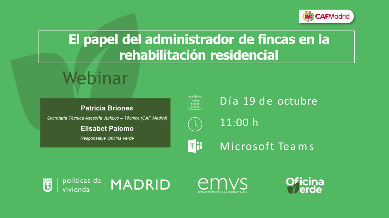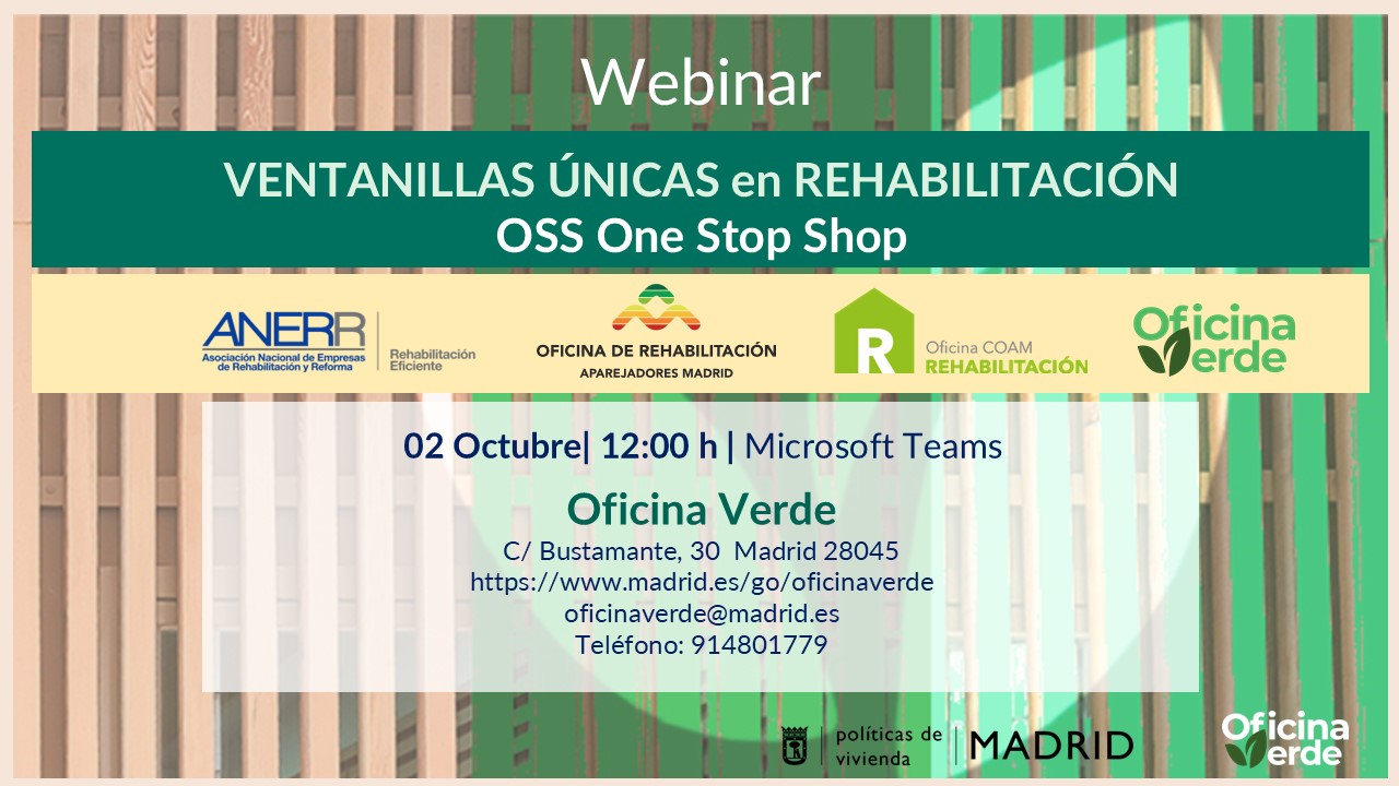 2025.10.02_Jornada "Ventanillas Únicas en Rehabilitación"Jornada en la que la asociación ANERR Asociación Nacional de Empresas de Rehabilitación y Reforma, la Oficina de Rehabilitación del Colegio Oficial de Arquitectos de Madrid - COAM, la Oficina de Rehabilitación del Colegio de arquitectos técnicos y aparejadores de Madrid COAATM y la Oficina Verde - Ayuntamiento de Madrid hablarán de los retos y las estrategias de las Ventanillas Únicas en el sector de la rehabilitación. -