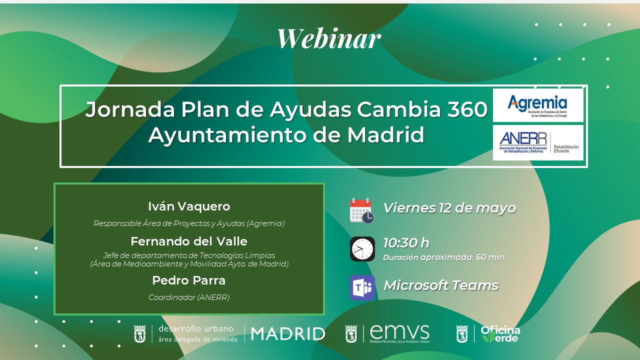 2023.05.12_Jornada Plan de ayudas cambia 360 del Ayuntamiento de MadridEl plan de ayudas Cambia 360 contempla diferentes líneas de subvención para reducir los gases de efecto invernadero -