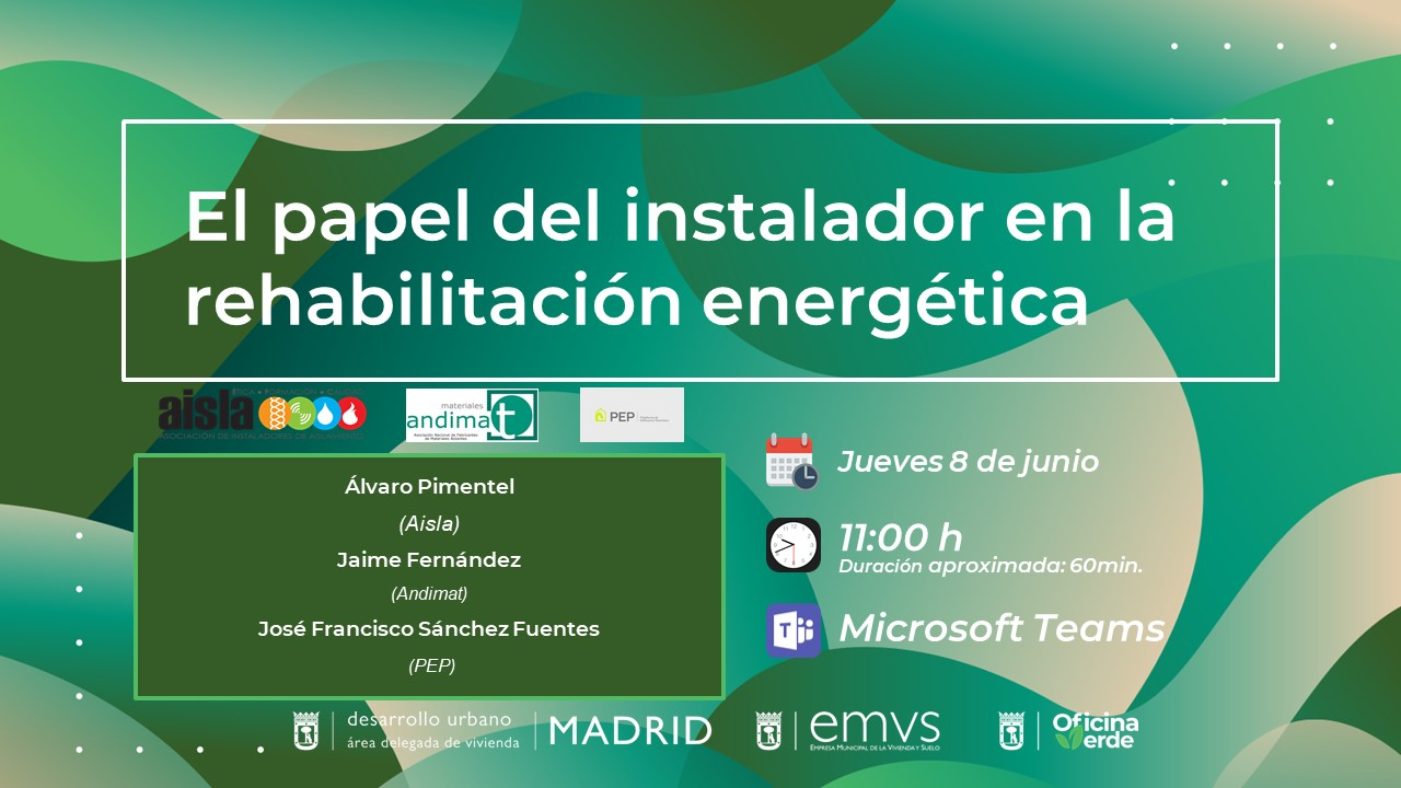 2023.06.08_El papel del instalador en la rehabilitación energéticaEn esta jornada se abordarán temas fundamentales tales como buenas prácticas, aislamiento en cámara de aire, minimización de puentes térmicos, infiltraciones de aire y diferentes patologías. -