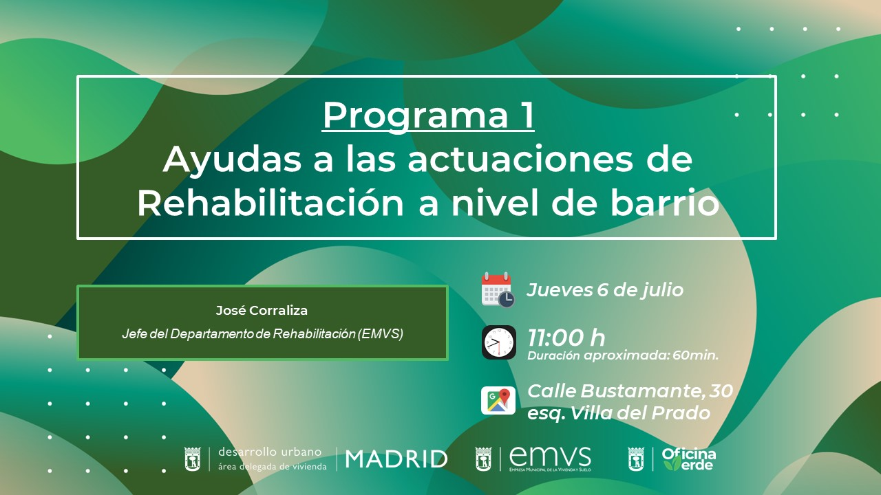 2023.07.06_Jornada 1 Programa de Barrios: Ayudas en los ERRPLa EMVS explicará la solicitud de ayuda relativa a "Ayudas en los ERRP" (Entornos Residenciales de Rehabilitación Programada)" y resolverá todas las dudas relativas a la misma -