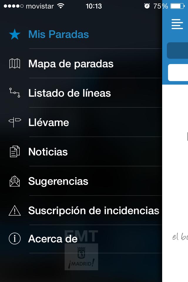 Esta aplicación permite a los usuarios disponer de toda la información de la oferta de servicios de la EMT. Entre sus principales características, destacan el cálculo de rutas, la consulta de tiempos de espera del autobús, la información sobre toda la red de líneas (con horarios, mapas y esquemas detallados), la información sobre paradas, la configuración de paradas y rutas favoritas, el geo-posicionamiento para localizar las paradas y líneas de la EMT más cercanas al usuario, noticias y un largo etcétera.