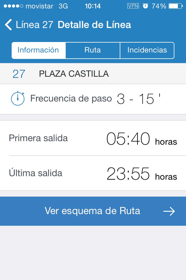 La nueva versión 5.0 de la app oficial de la EMT de Madrid ha sido completamente renovada e incorpora novedades que ofrecen una mejor experiencia de usuario, y mayor velocidad y calidad de la información ofrecida sobre el servicio de la empresa madrileña. La aplicación ya está disponible para dispositivos Apple en el Apple Store (versión compatible con sistema operativo iOS7) y en breve lo estará para Android en el Google Play./