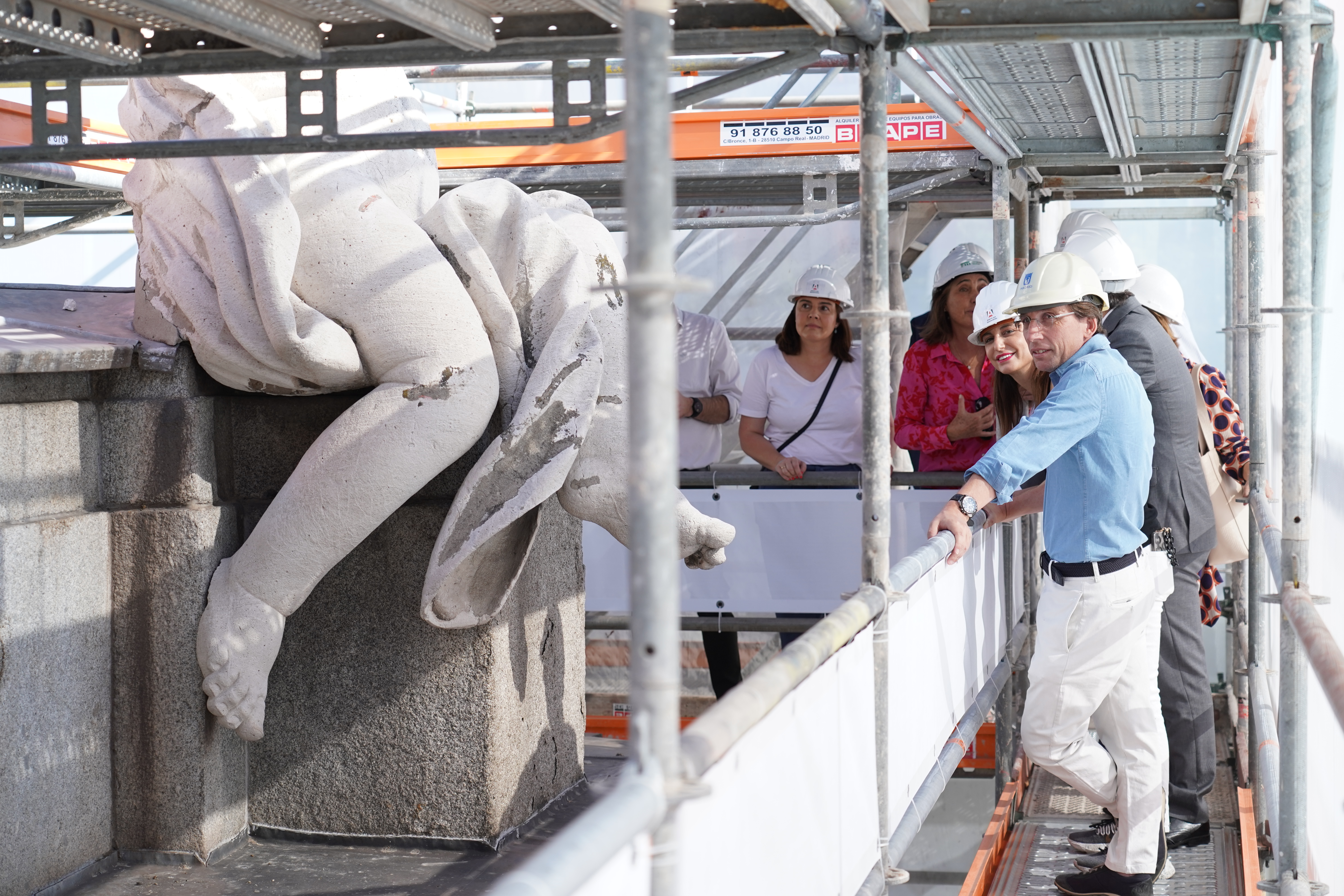 El Ayuntamiento de Madrid, a través del Área de Cultura, Turismo y Deporte, pone en marcha Abierto por Restauración, un programa de visitas guiadas y gratuitas a bienes culturales durante su proceso de restauración. Esta actividad permite a los participantes profundizar en el conocimiento del valor patrimonial de los monumentos y supone una oportunidad única para conocer de primera mano la labor de investigación, conservación y restauración que se lleva a cabo desde el Consistorio. El alcalde de Madrid, José Luis Martínez-Almeida, junto a la delegada del Área de Cultura y Turismo, Andrea Levy, ha visitado hoy la Puerta de Alcalá para conocer los trabajos de diagnóstico del estado del monumento, que podrá ser visitado por la ciudadanía desde el próximo 30 de julio gracias a este programa.