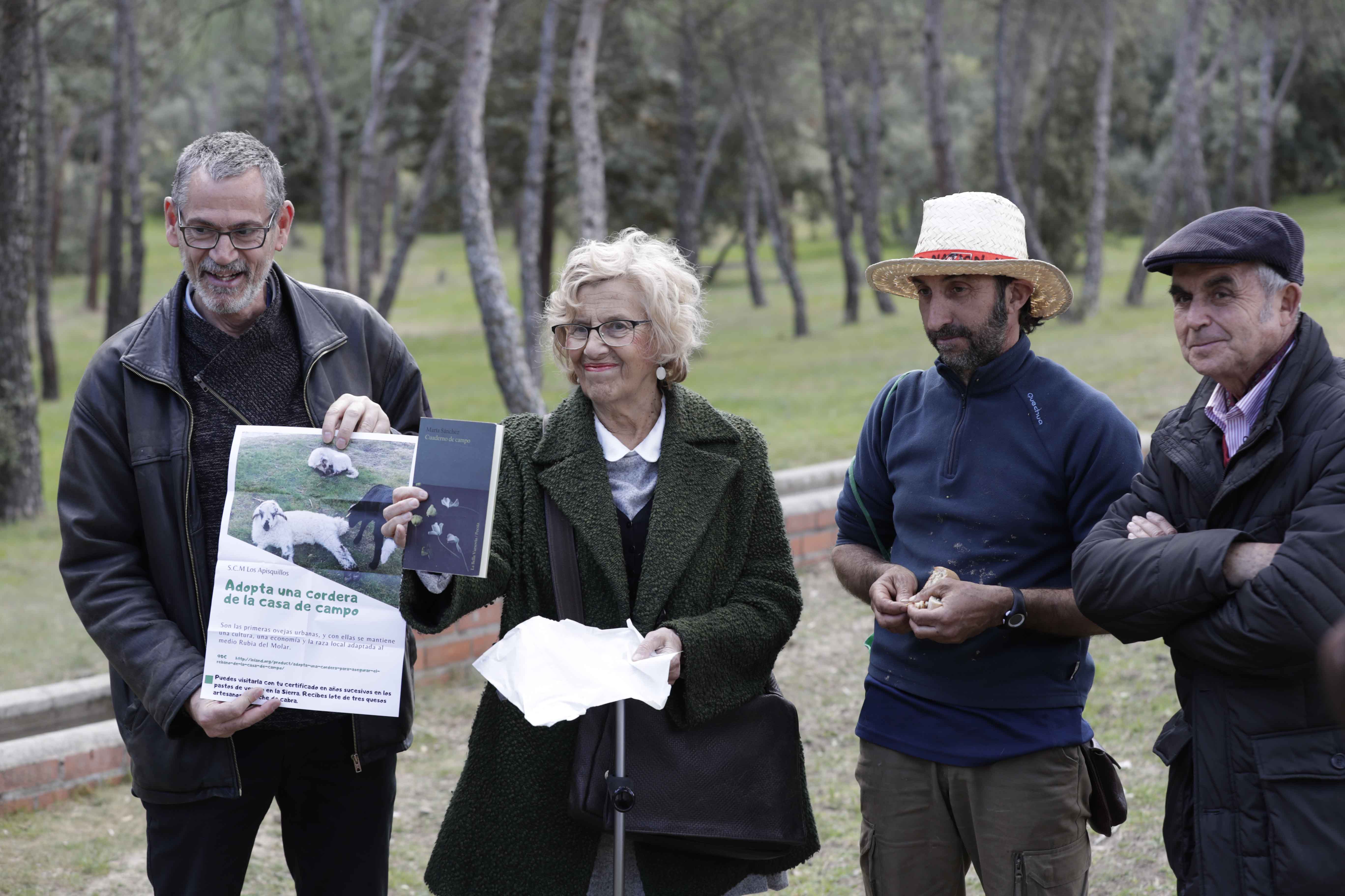 La alcaldesa de Madrid, Manuela Carmena, ha visitado esta mañana el rebaño de 300 ovejas y 200 corderos que pasta desde principios del presente mes de marzo en la Casa de Campo. Estos animales actúan como bomberos para prevenir los incendios forestales, a la vez que contribuyen a la limpieza de los pastos, a la regeneración del suelo y a la biodiversidad. “Yo acabo de adoptar una cordera y animo a todos los ciudadanos a hacer lo mismo”, ha comentado Carmena.