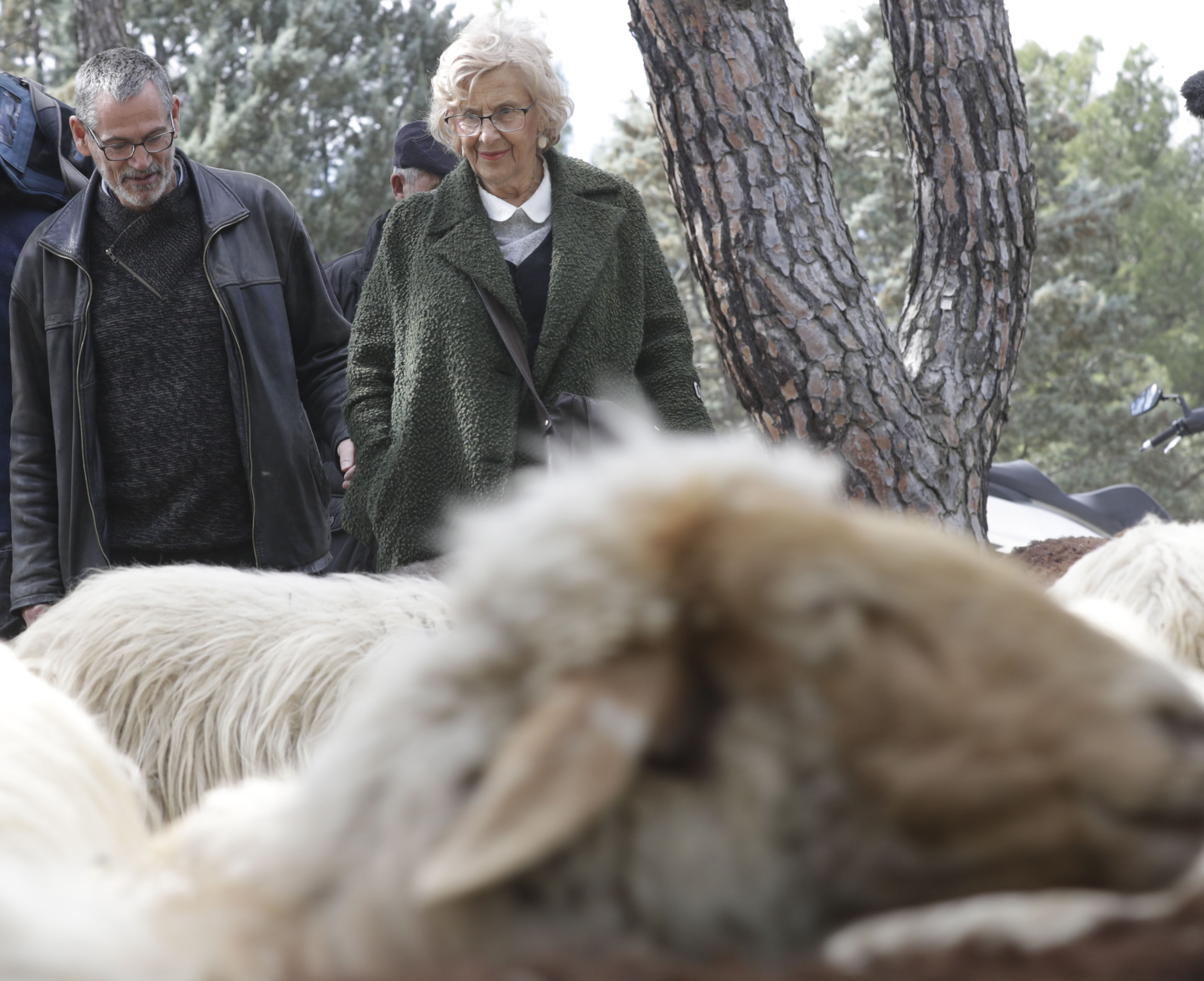 La alcaldesa visita al rebaño de 300 ovejas y 200 corderos que pasta en la Casa de Campo