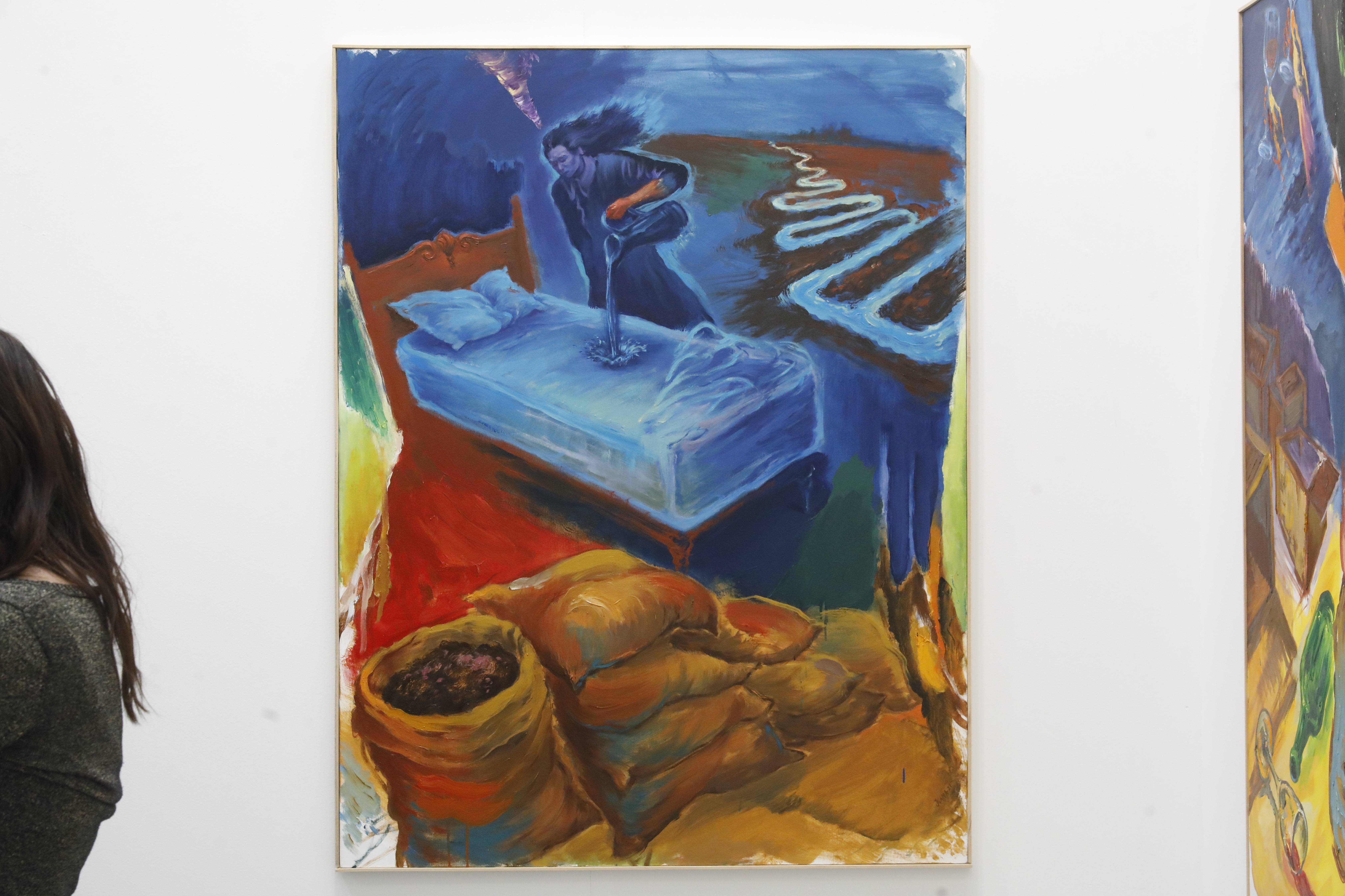 Riegode Juana González realizada en óleo sobre lienzo en 2021. La obra de Juana González se desarrolla en las disciplinas de la pintura y el dibujo. Sus cuadros de tamaños imponentes son puestas en escena de personajes involucrados en misteriosas tareas en un conjunto complejo y original. Su estilo se inscribe a la vez en el expresionismo, el surrealismo y la figuración narrativa.