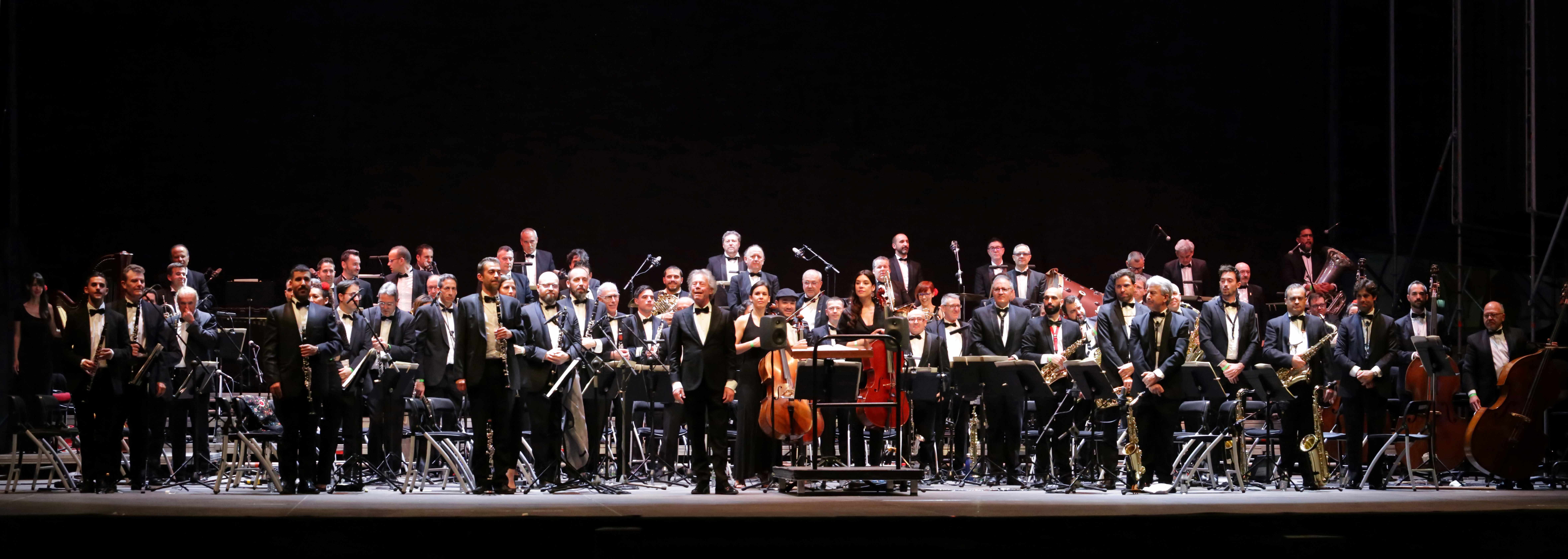 En las imágenes, la Banda Sinfónica Municipal de Madrid y el artista El artista Leonardo Echeverri y su actuación de cuencos tibetanos