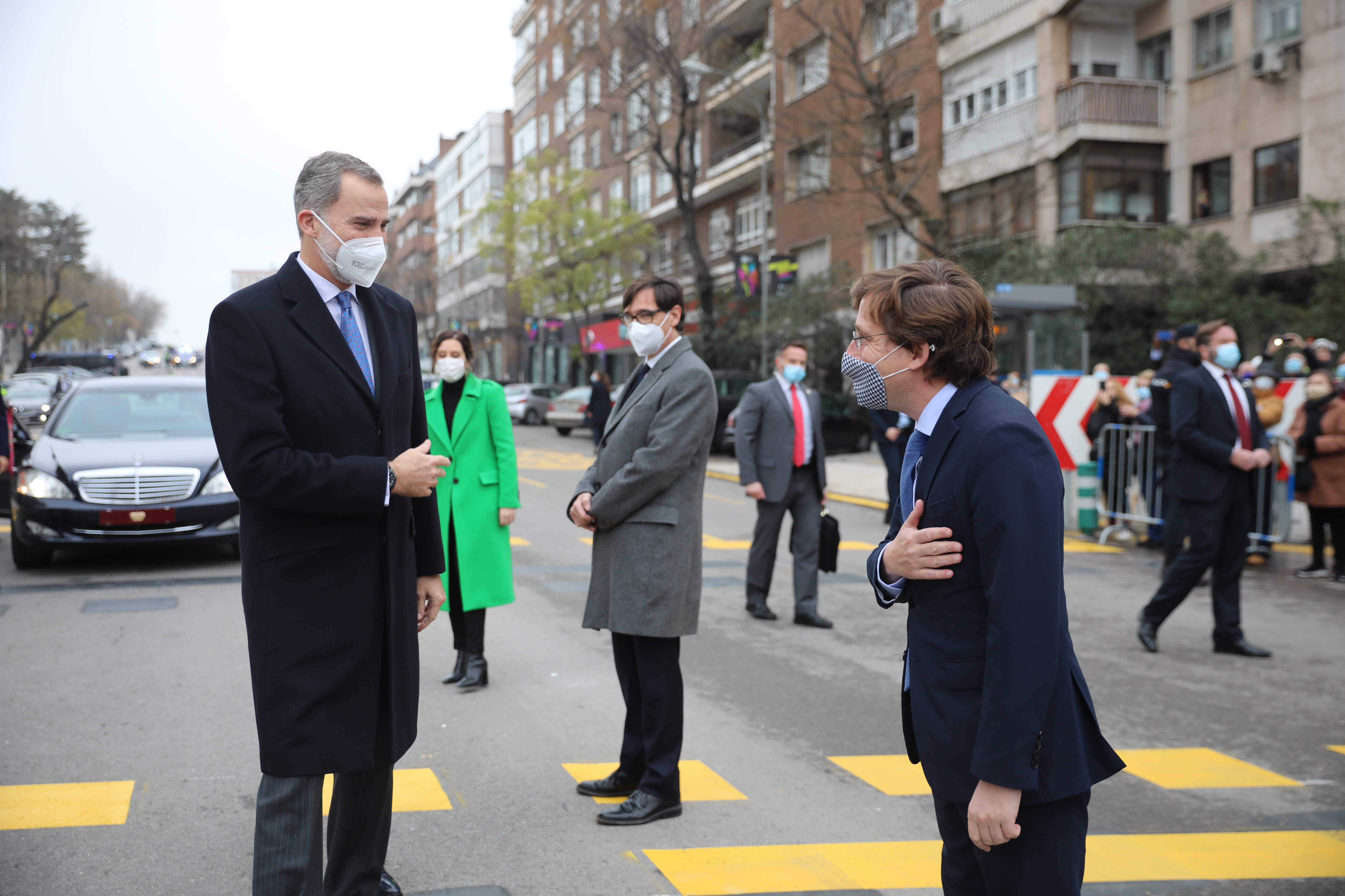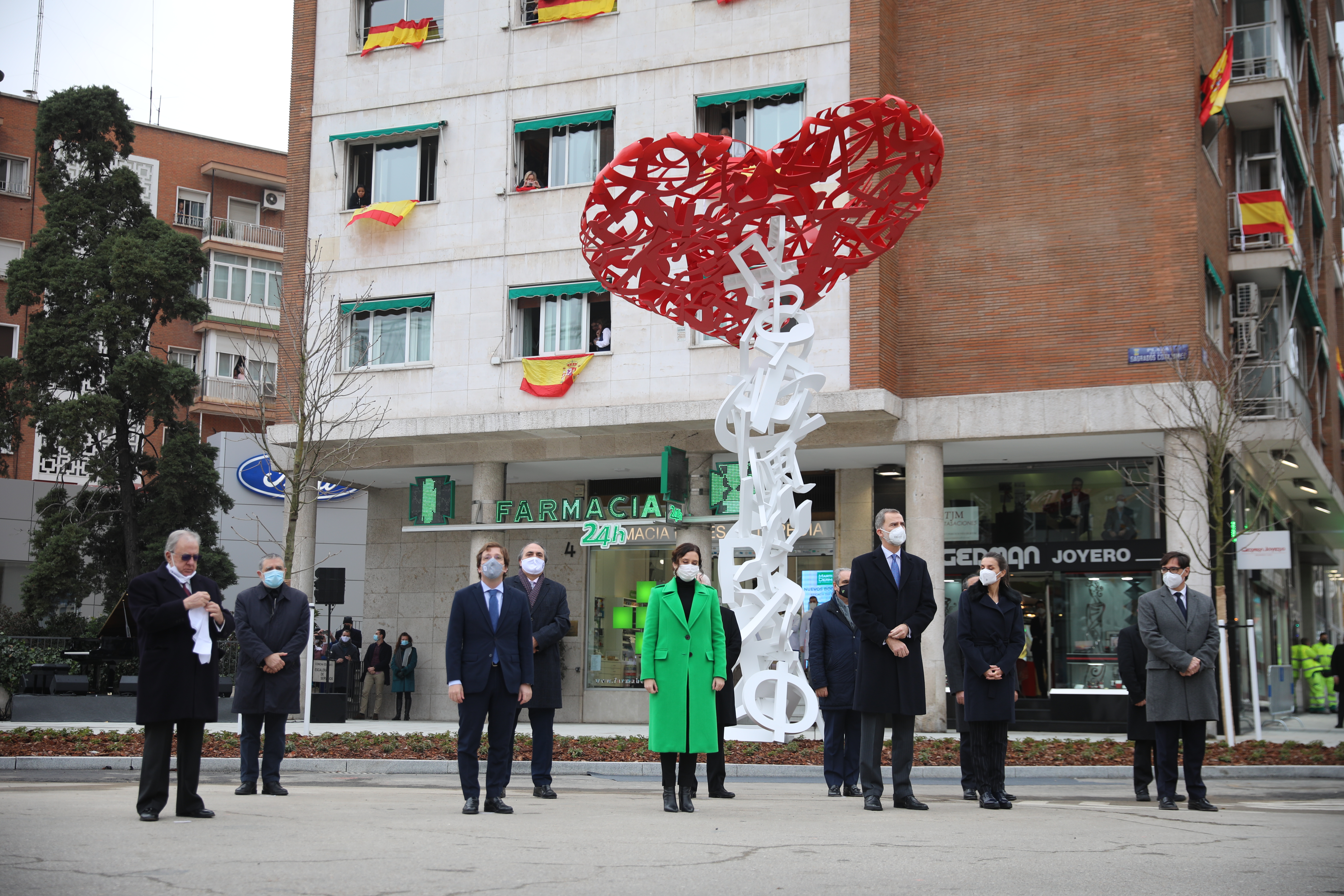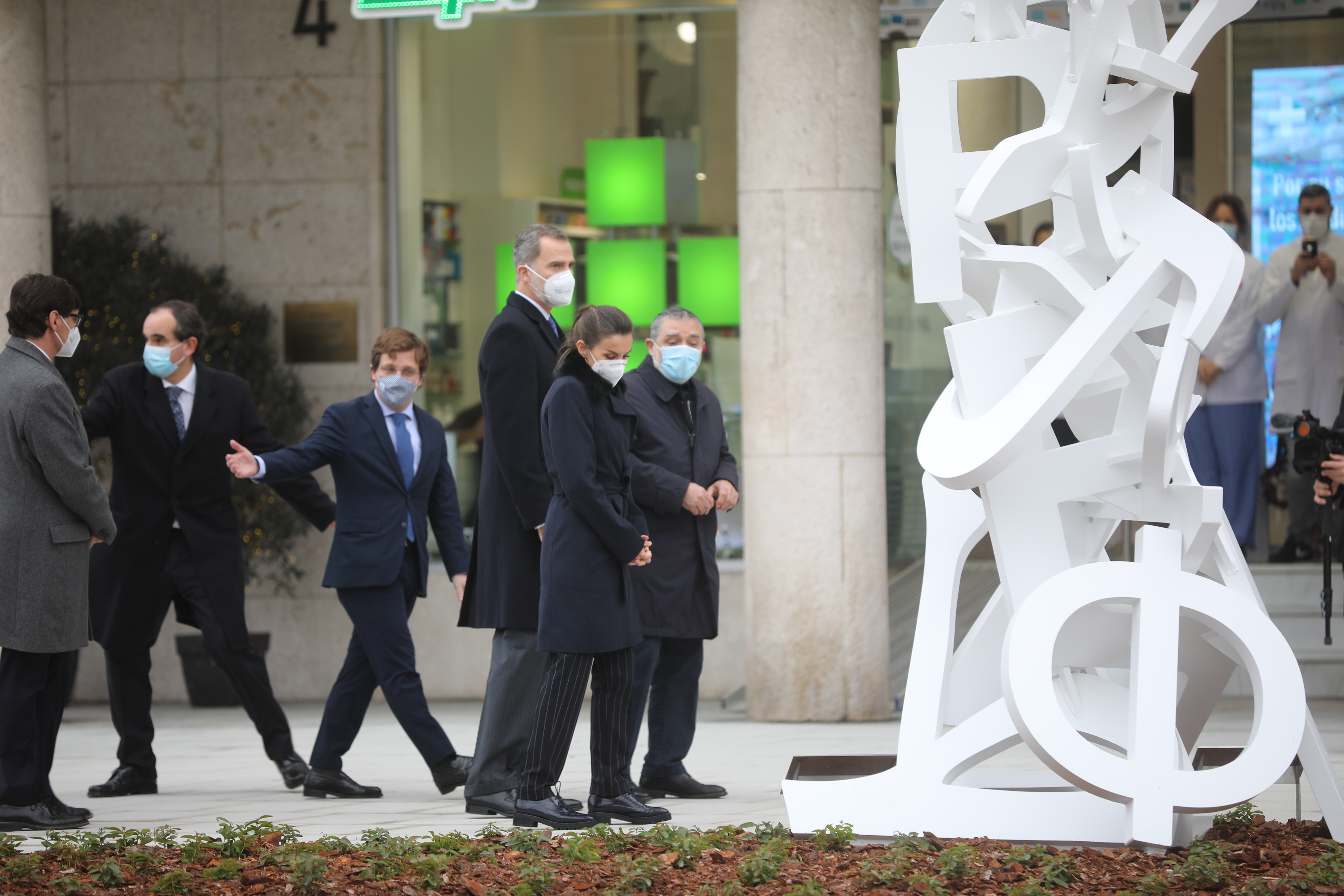 El alcalde de Madrid, José Luis Martínez-Almeida, y la vicealcaldesa, Begoña Villacís, han asistido este viernes junto a los reyes de España a la inauguración de El árbol de la vida, monumento realizado por el escultor Jaume Plensa a iniciativa de la fundación Agrupación Mutual Aseguradora (AMA) de los profesionales sanitarios en memoria y reconocimiento de los sanitarios fallecidos en el ejercicio de su profesión durante la pandemia por COVID-19. La escultura, ubicada en la plaza de los Sagrados Corazones, en el distrito de Chamartín, será donada al Ayuntamiento de Madrid.