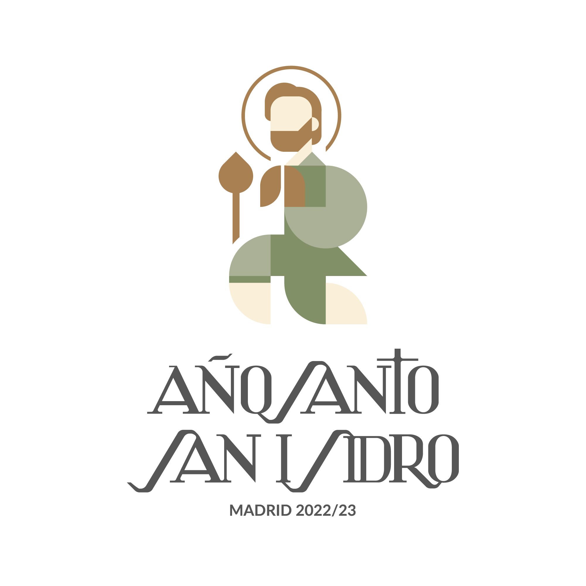El logotipo del Año Santo, realizado por el Ayuntamiento de Madrid, representa al santo de rodillas, en postura de oración, acompañado en su mano derecha por la aguijada, su instrumento de trabajo. En la punta de esta se puede ver que cae una gota de agua, elemento presente en muchos de los milagros del Santo. Los colores utilizados son los tonos verdes y marrones, colores del campo, la tierra, la agricultura, el amor y el cuidado a la naturaleza. El logotipo presenta asimismo un aire castizo, inspirado gráfica y tipográficamente en los azulejos que dan nombre a las calles de la ciudad. /