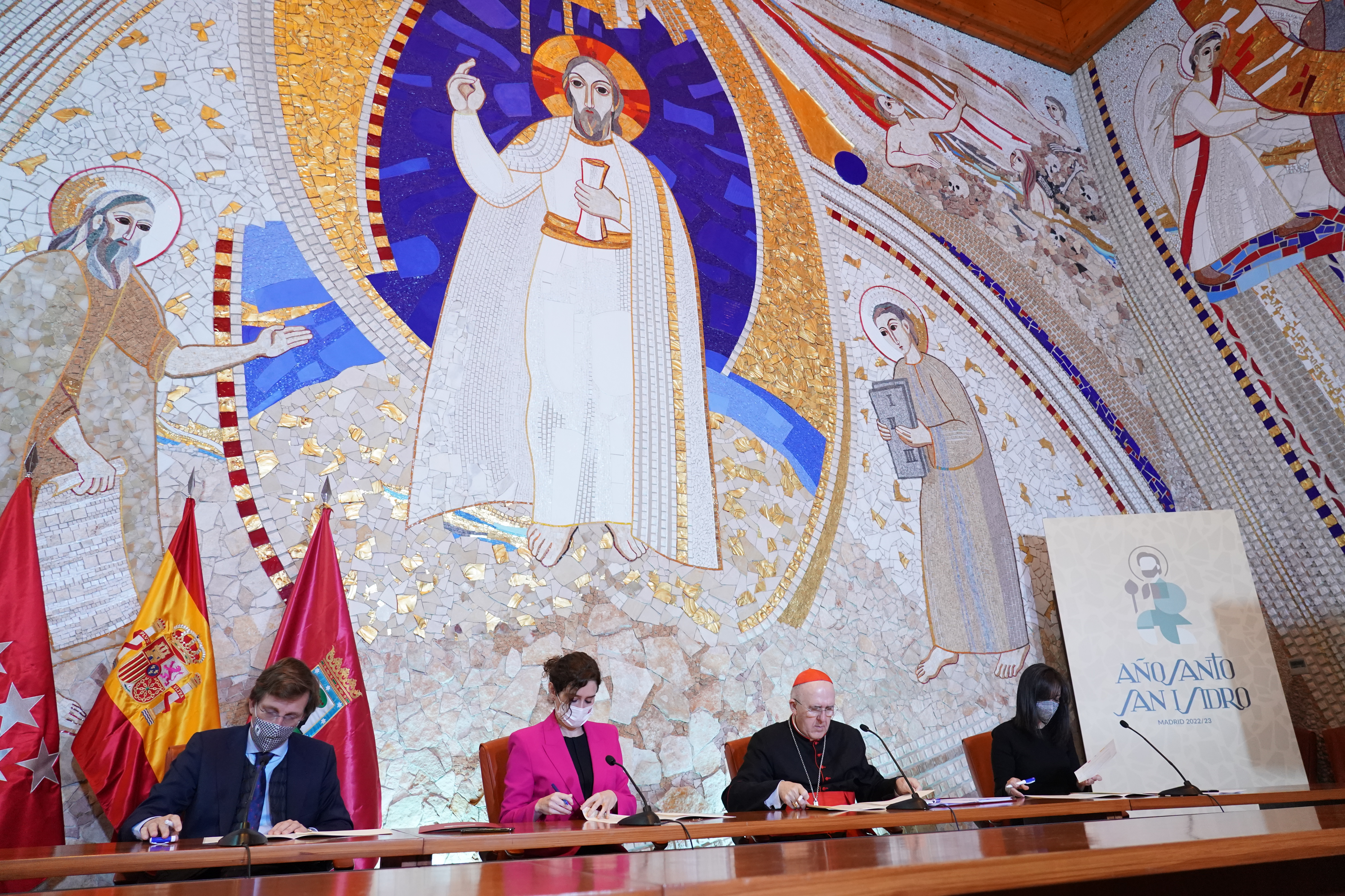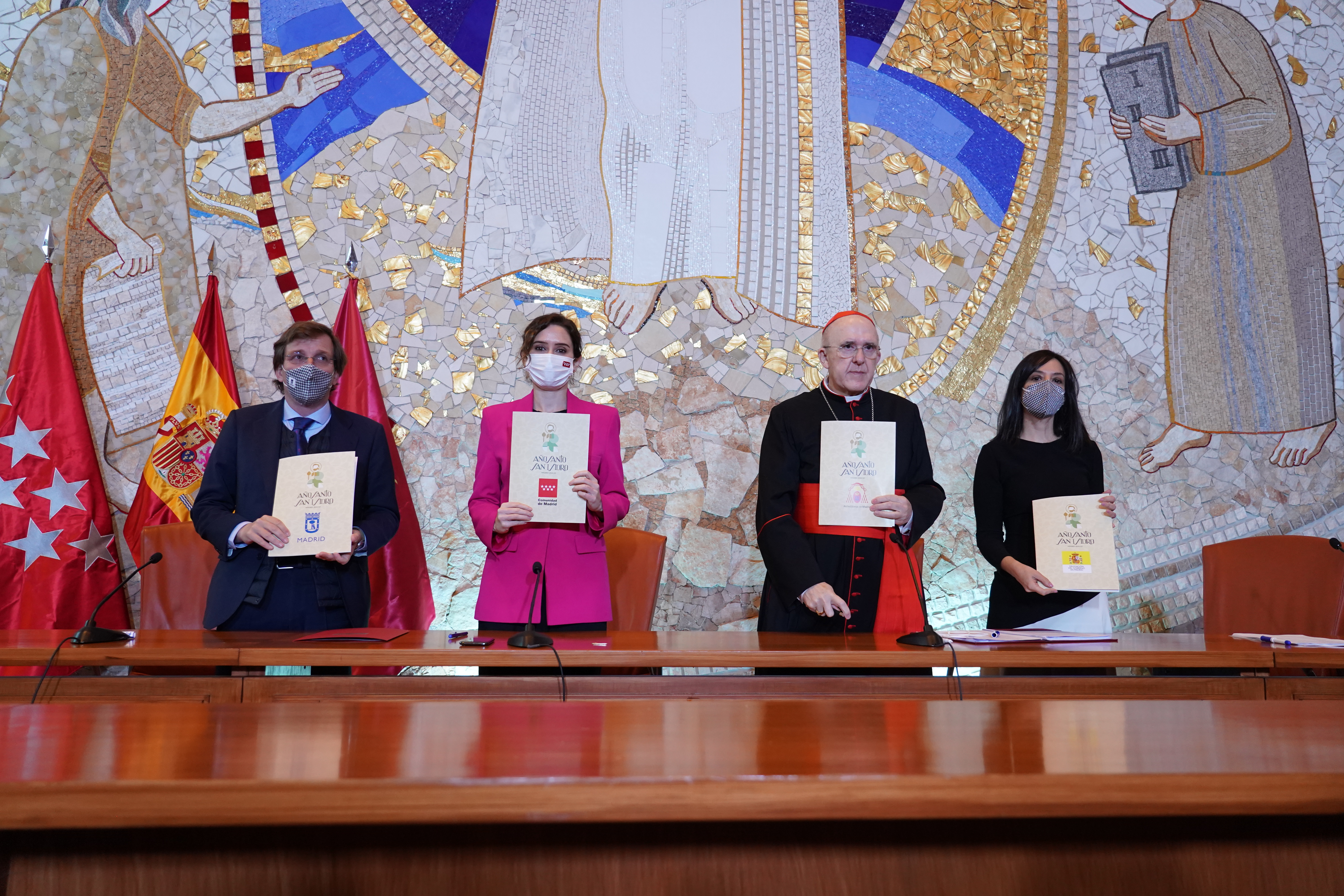 Con motivo de este IV centenario de la canonización del patrón de la ciudad, el Ayuntamiento de Madrid organizará, junto al Arzobispado, la Comunidad de Madrid y la Delegación del Gobierno en Madrid, una amplia programación de actividades. Hoy, el alcalde de Madrid, José Luis Martínez-Almeida, ha suscrito el acuerdo que regirá el desarrollo del Año Santo Jubilar San Isidro Labrador junto al arzobispo de Madrid, cardenal Carlos Osoro, la presidenta de la Comunidad, Isabel Díaz Ayuso, y la delegada del Gobierno, Mercedes González.