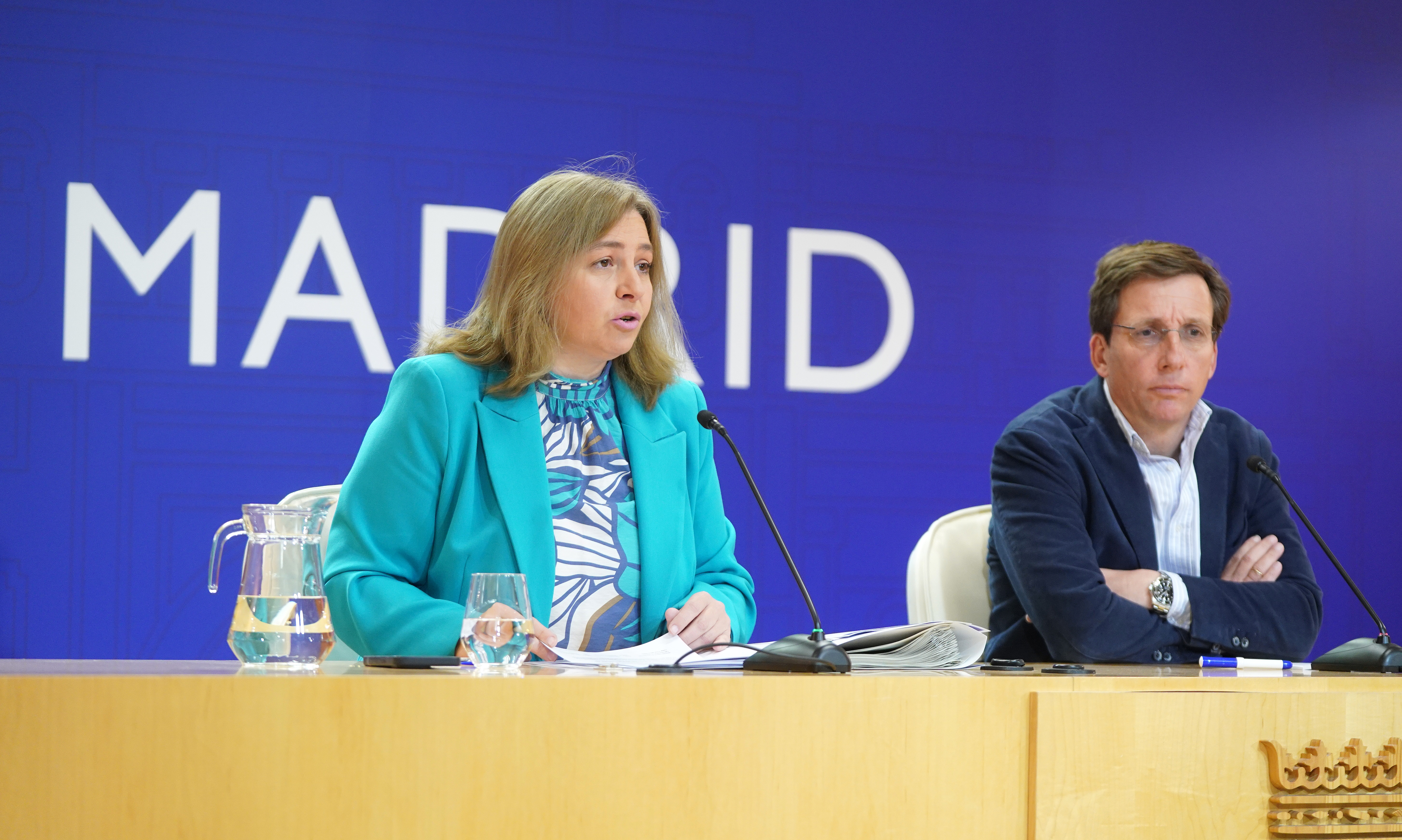 Sanz interviene en la rueda de prensa post Junta de Gobierno de este jueves, en presencia del alcalde, José Luis Martínez-Almeida
