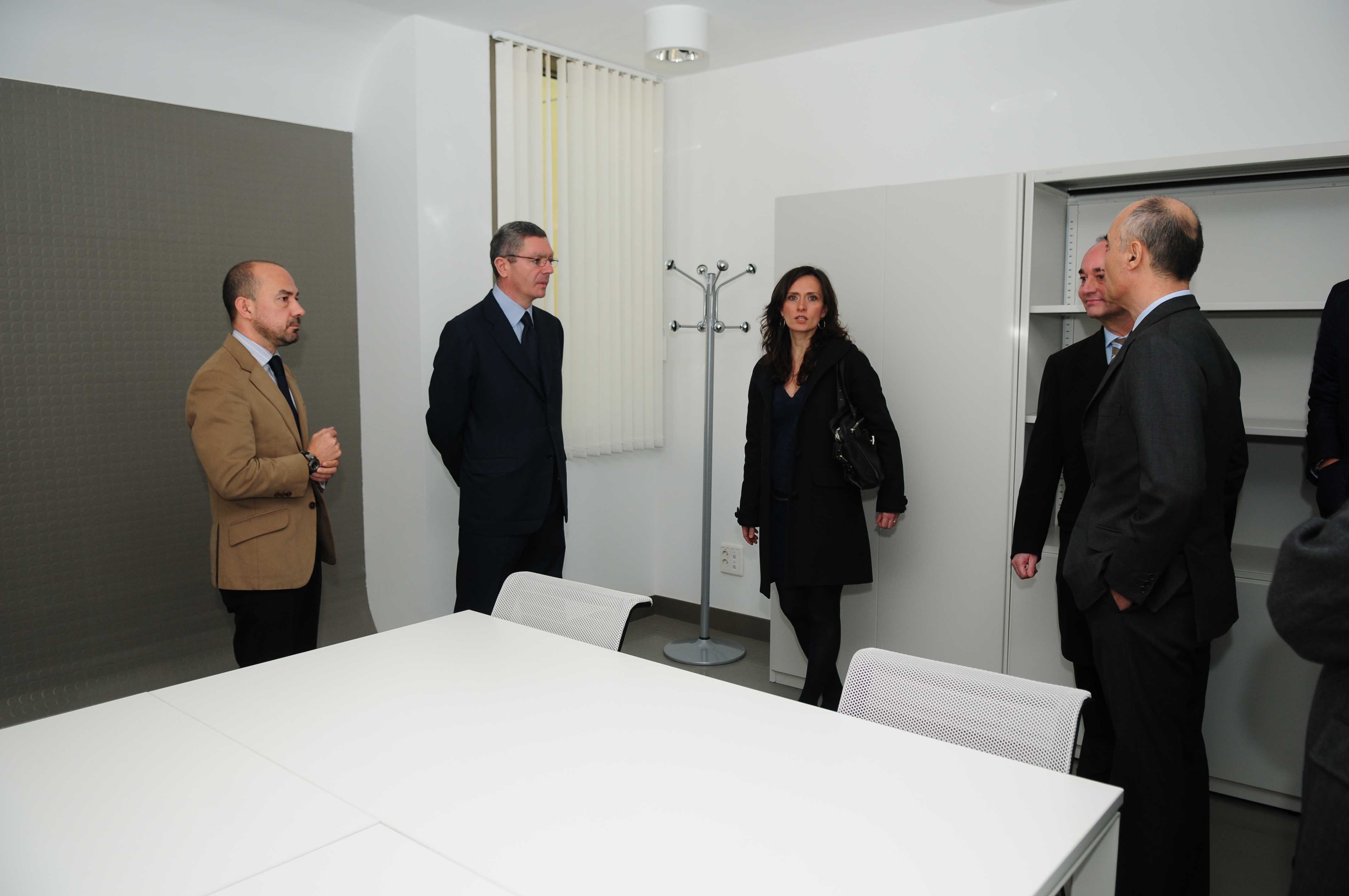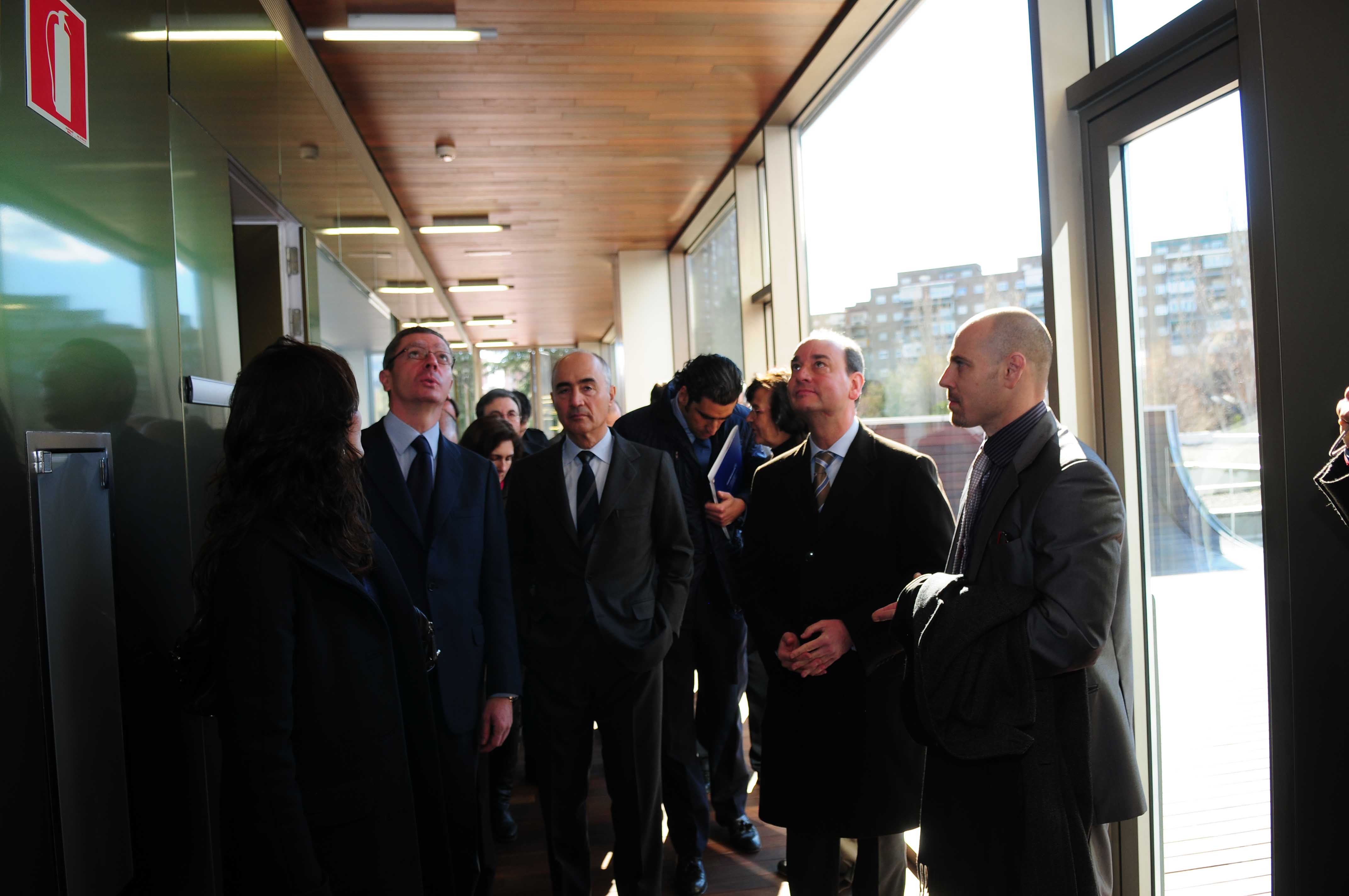 El alcalde de Madrid, Alberto Ruiz-Gallardón, acompañado por el delegado de Economía, Empleo y Participación Ciudadana, Miguel Ángel Villanueva, ha inaugurado hoy el nuevo Vivero de Empresas de Moratalaz, ubicado en un edificio de diseño vanguardista, muy acorde con su contenido. Son 1.000 metros cuadrados que acogen 13 despachos-taller para los emprendedores del sector del diseño