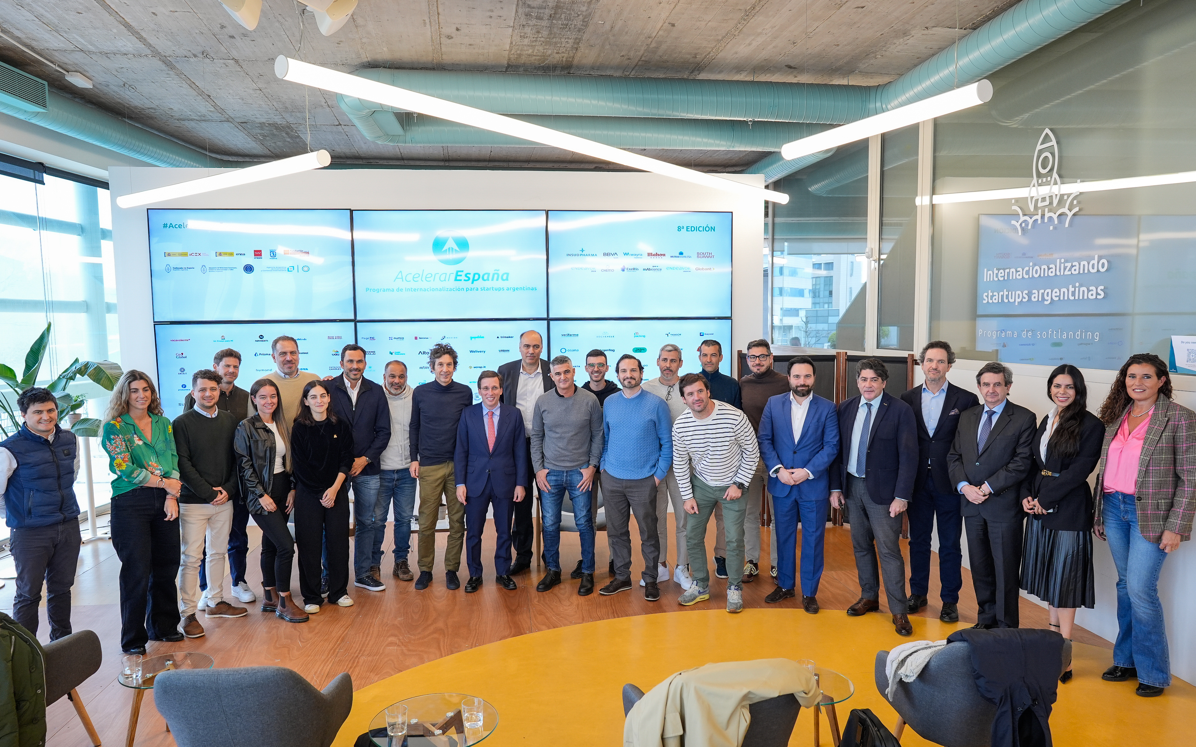 El alcalde de Madrid, José Luis Martínez-Almeida, acompañado del concejal delegado de Innovación y Emprendimiento, Ángel Niño, y el concejal de Hortaleza, David Pérez, ha inaugurado esta mañana la octava edición del programa de internacionalización para startups argentinas ‘Acelerar España’, iniciativa filantrópica que conecta fundadores de startups de Argentina con líderes del mercado español.