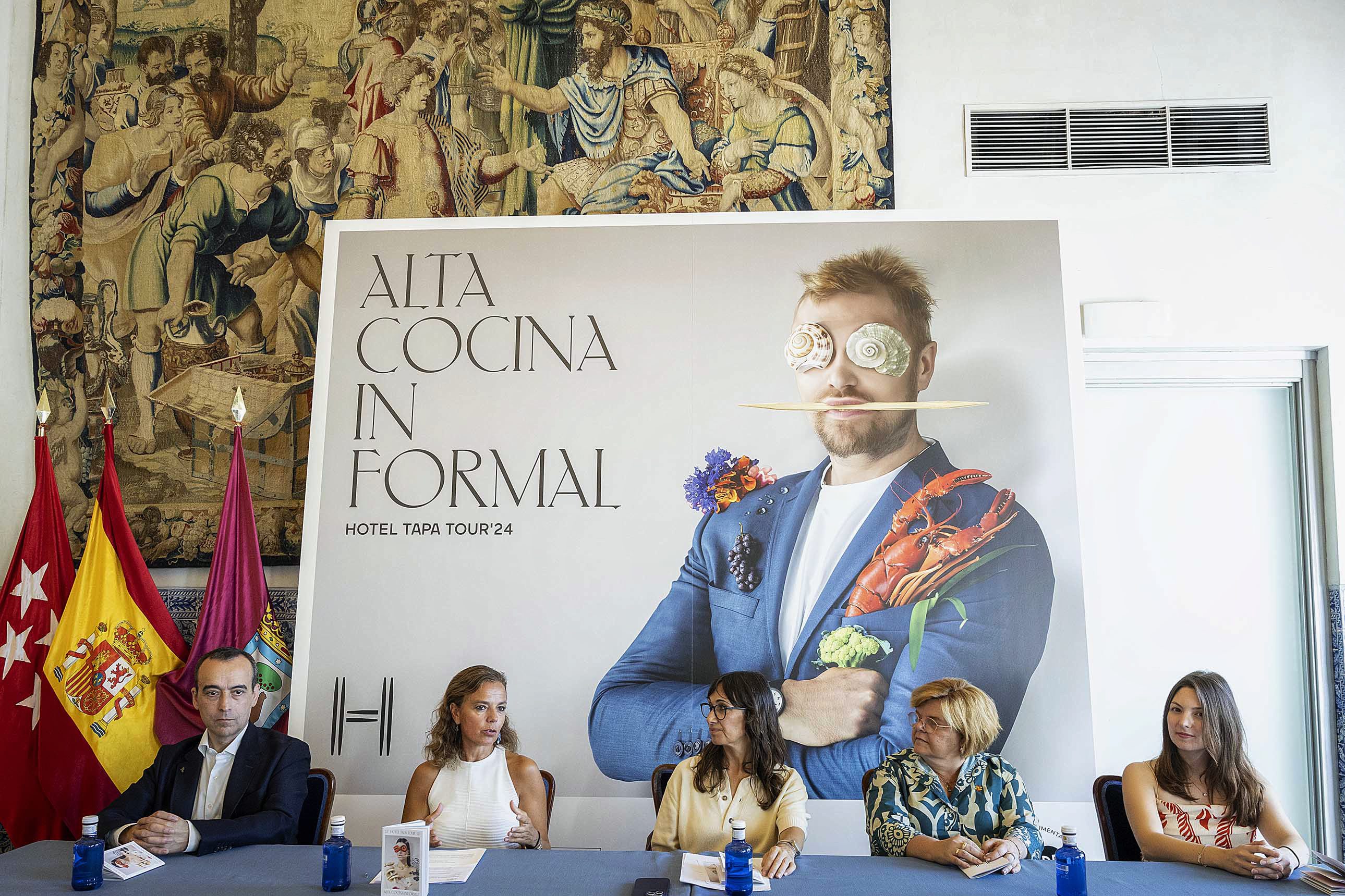 La ciudad de Madrid acogerá, del 19 al 29 de septiembre, la novena edición de Hotel Tapa Tour, el festival de gastronomía que tiene como escenario los hoteles de cuatro y cinco estrellas de la capital y como gran protagonista una de las tradiciones gastronómicas y culturales madrileñas más arraigadas, el tapeo. El Ayuntamiento patrocina esta cita anual que ha sido presentada esta mañana por la concejala delegada de Turismo, Almudena Maíllo, y la fundadora de Hotel Tapa Tour, Nona Rubio, junto a representantes del sector de la alimentación y los chefs de los establecimientos participantes.