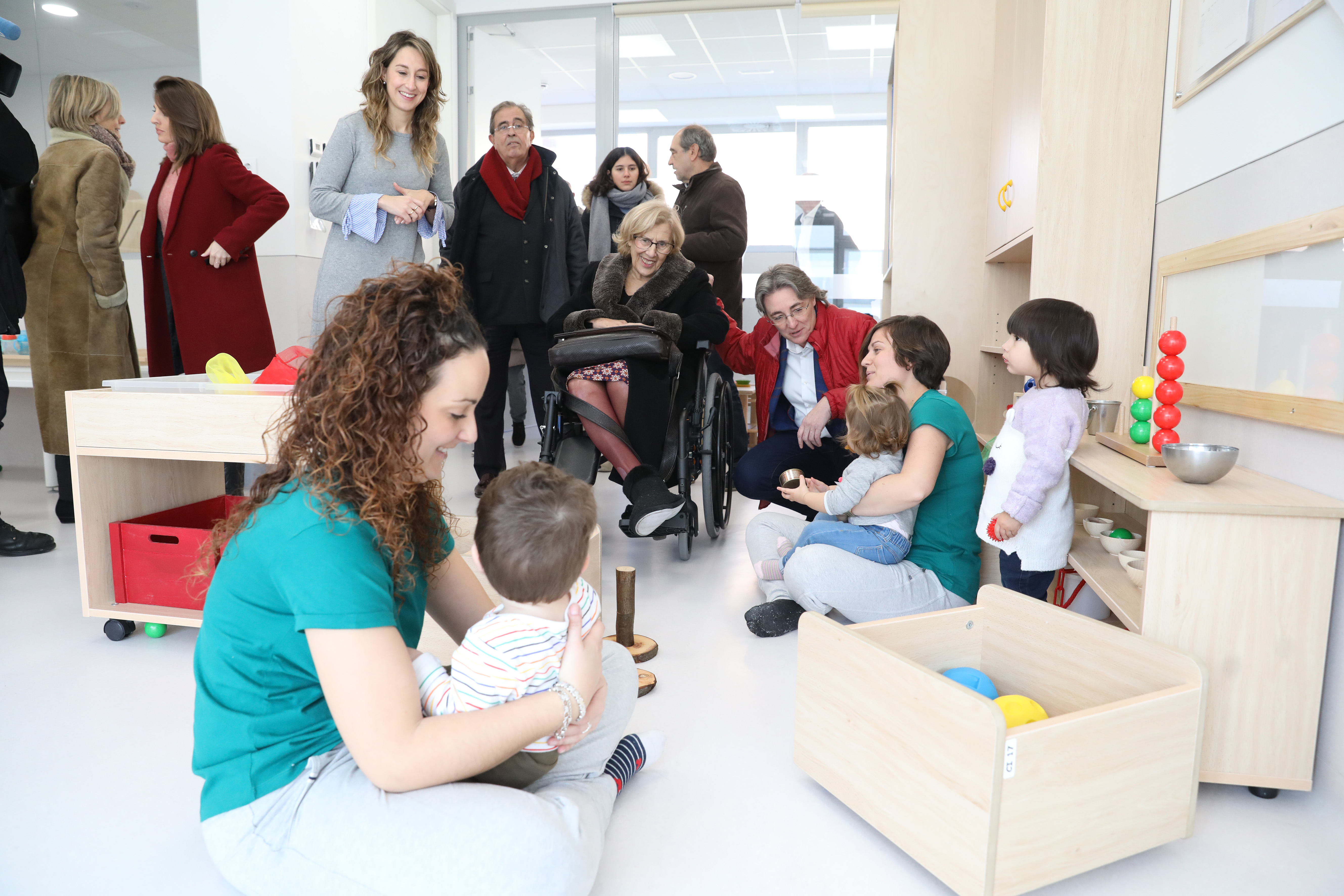 La alcaldesa de Madrid, Manuela Carmena, ha visitado hoy la escuela infantil (E.I.) “Sabina”, en el distrito de Moratalaz, con 156 plazas, para conocer el funcionamiento ‘in situ’ de una de las cuatro escuelas que comenzaron su funcionamiento el pasado 28 de enero, de las trece proyectadas para este año 2019. La escuela debe su nombre a la Sabina, planta leñosa y protegida que crece principalmente en las cumbres de las montañas mediterráneas.