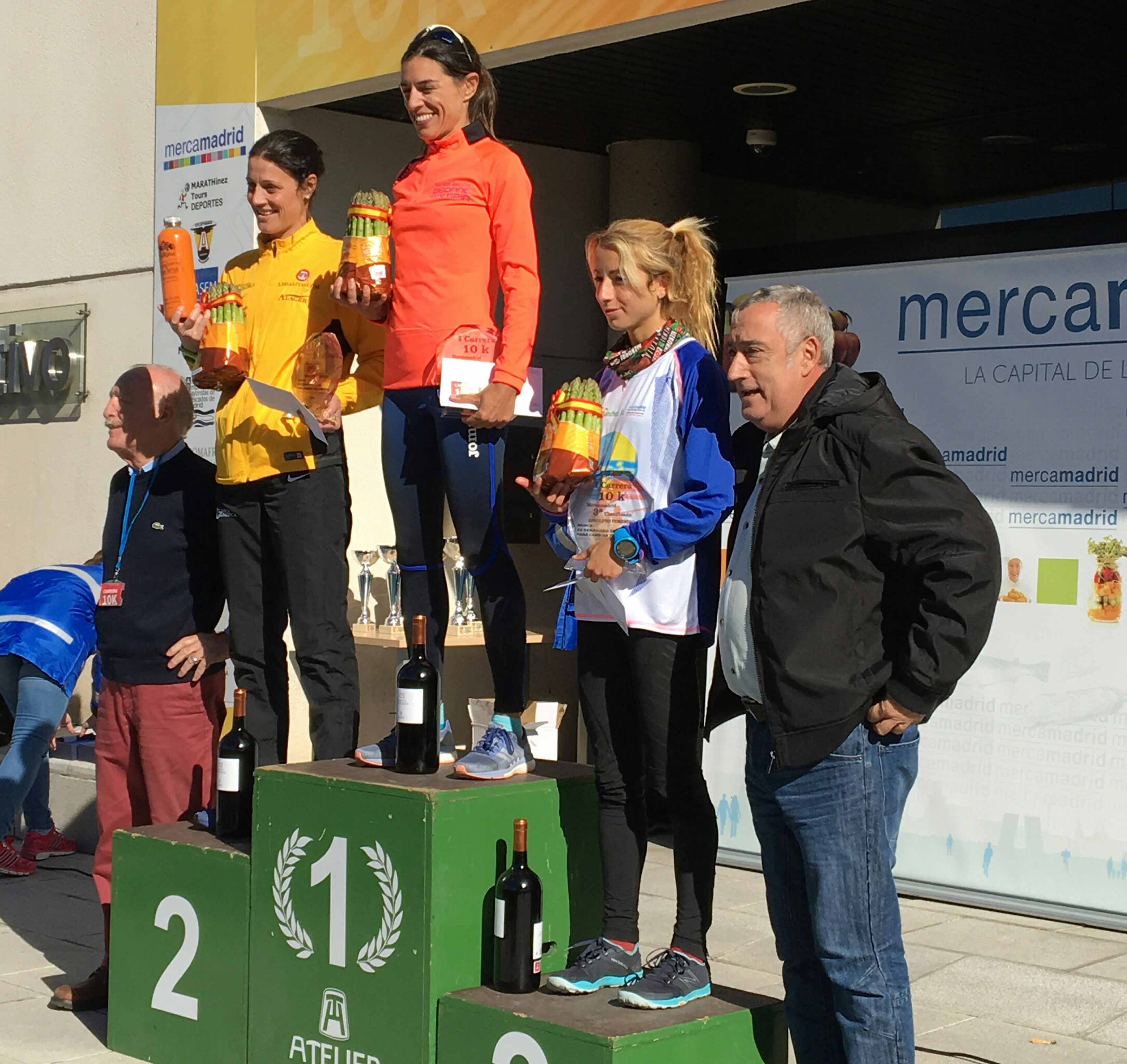 Marta Higueras, presidenta de Mercamadrid, primera teniente de alcalde del Ayuntamiento de Madrid y concejala del área de Equidad, Derechos Sociales y Empleo, en la entrega de trofeos de la 10k Mercamadrid