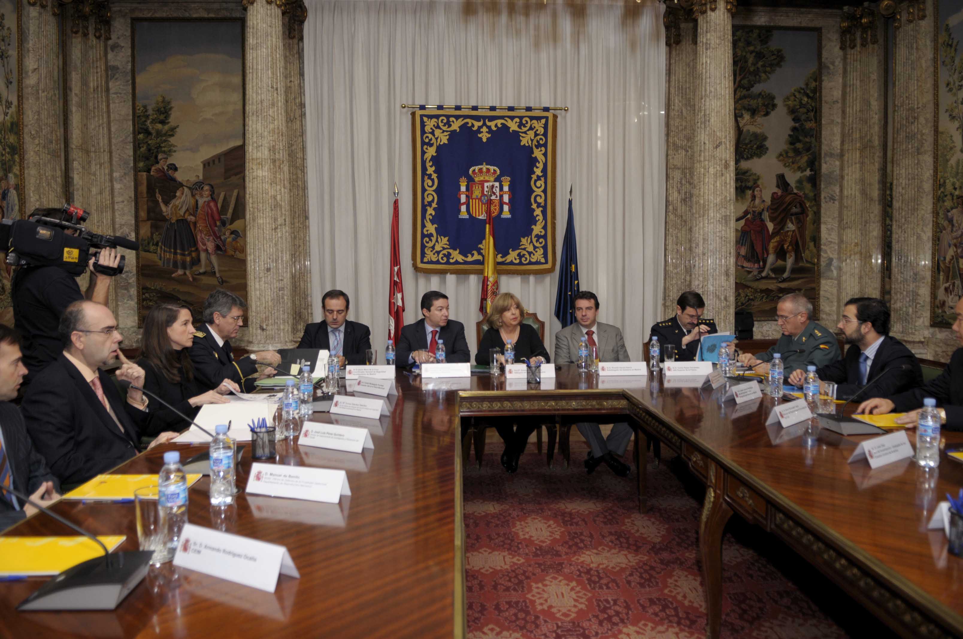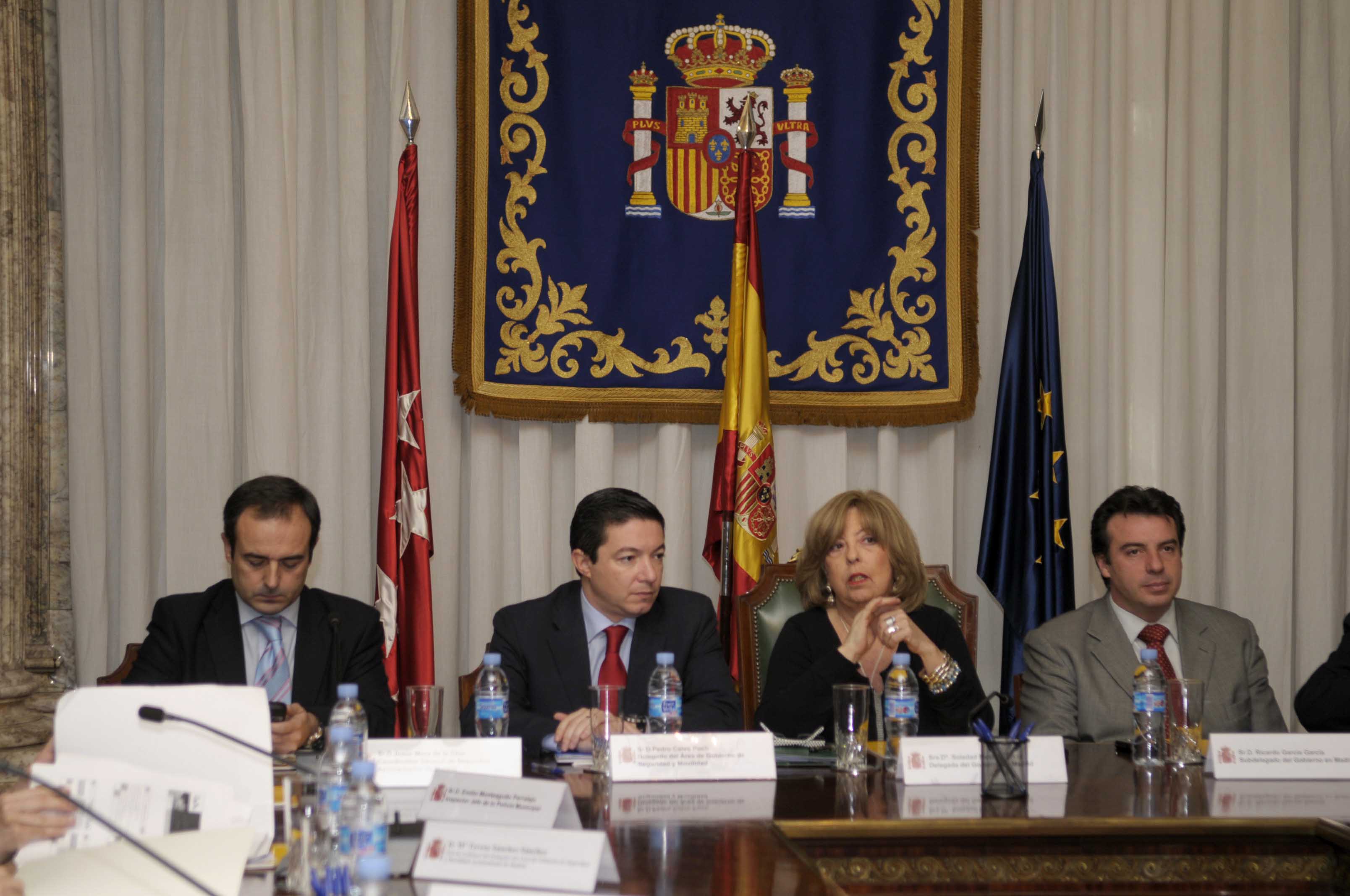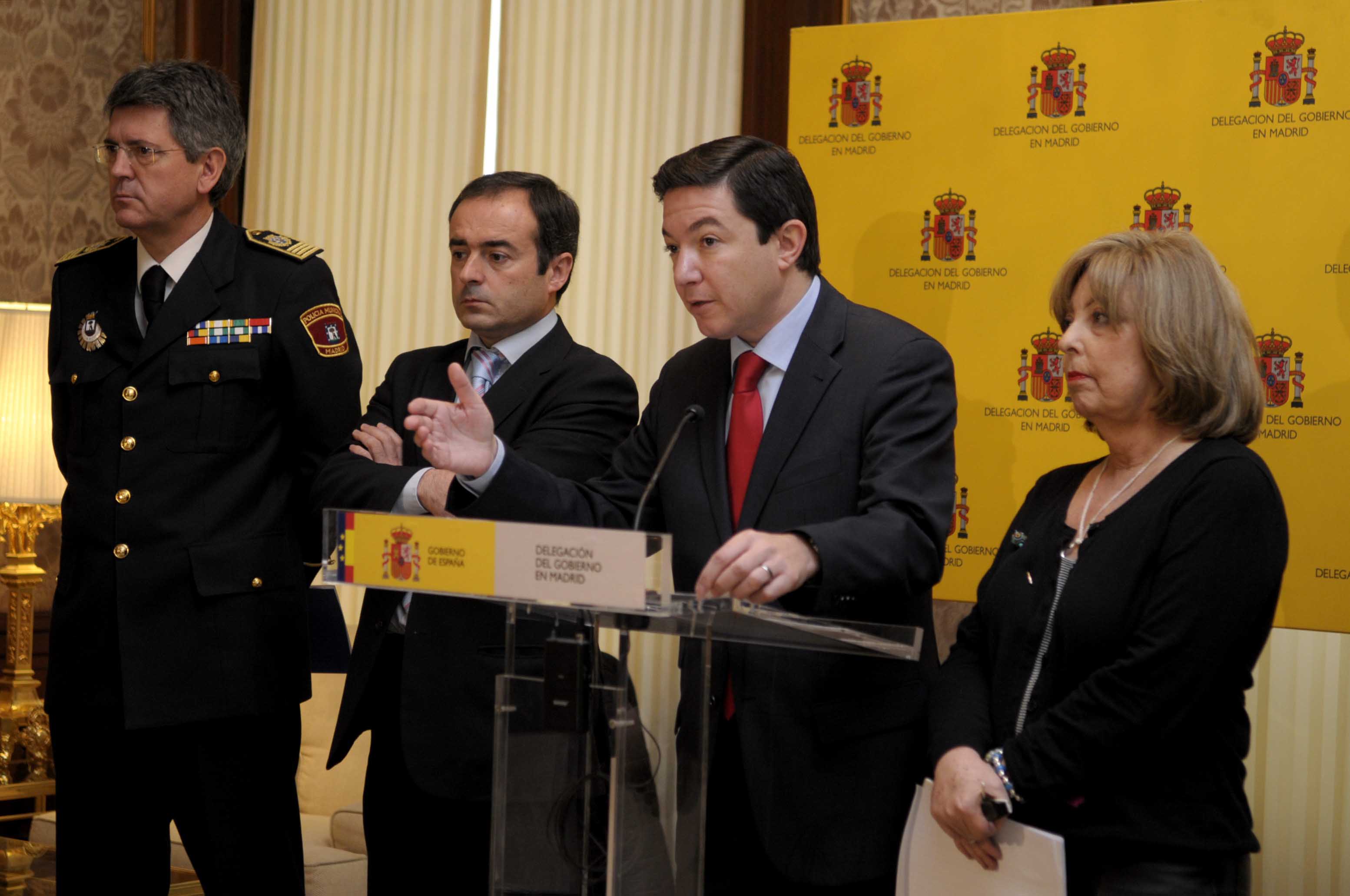 El delegado de Seguridad y Movilidad, Pedro Calvo, junto a la delegada del Gobierno en Madrid, Soledad Mestre, durante la presentación de la Campaña de seguridad de Navidad 2008-2009