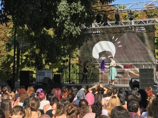El humor, esa herramienta tan transformadora, es la que han elegido un grupo de mujeres para desenmascarar la imagen de la feminista amargada. Para ello, han creado el I Festival de Humor Feminista al que han denominado ‘Coñumor’, que han puesto en marcha esta tarde y al que han asistido cerca de 500 personas. La delegada de Políticas de Género y Diversidad, Celia Mayer, también ha asistido al evento, organizado por mujeres para acercar el feminismo al público adulto. Ha tenido lugar esta tarde, desde las 16 a las 21 horas, cuajado de risas y bailes y se ha celebrado al aire libre, en la terraza de la Casa de Vacas del Parque de El Retiro, y el acceso era gratuito.