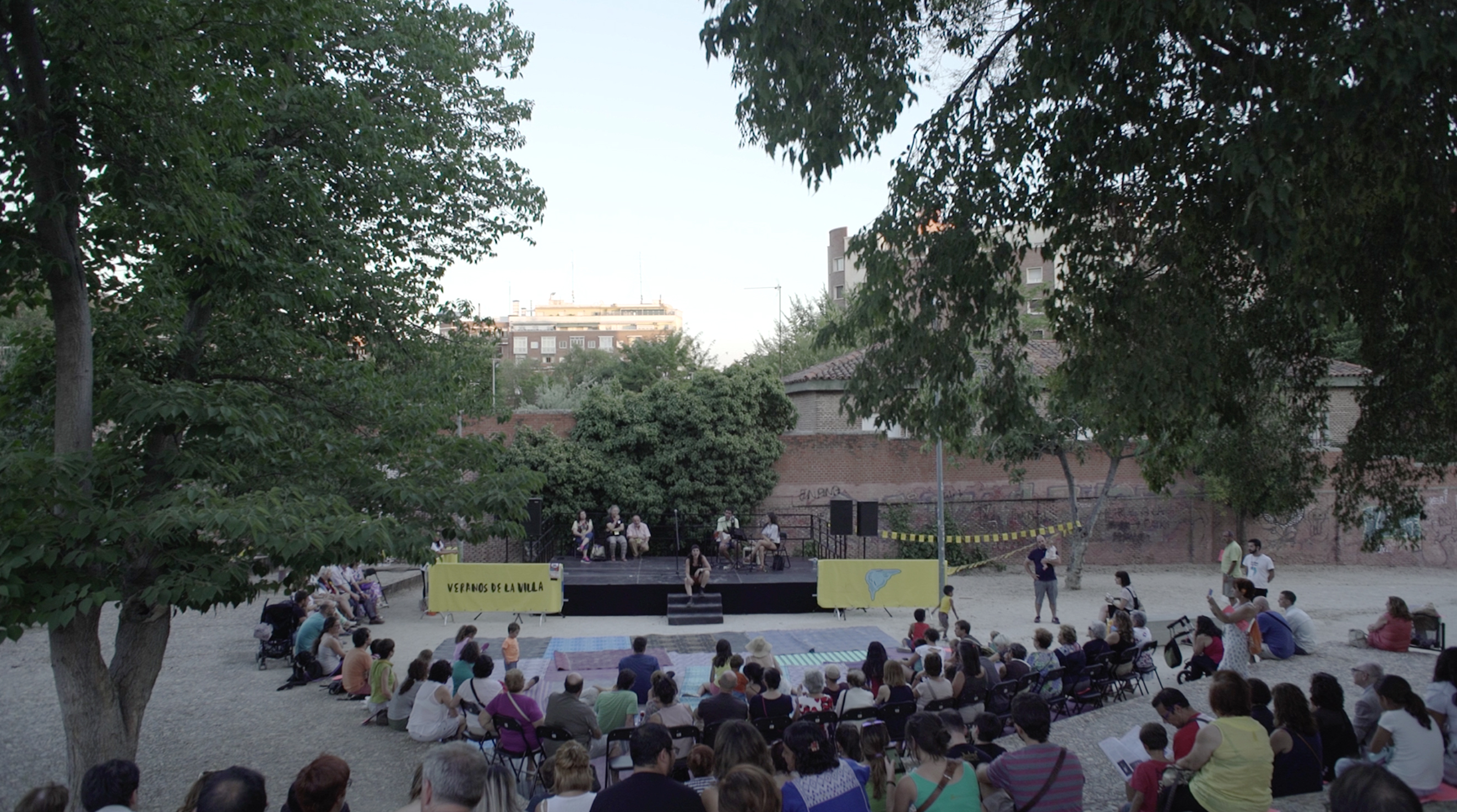 El Casino de la Reina y la corrala de la calle Mesón de Paredes se convirtieron en escenario variable y cambiante para propuestas de todo tipo. Con el título Los mayores cuentan cuentos, el Parque Casino de la Reina sirvió de lugar de encuentro para la transmisión oral entre mayores y pequeños, en formato cuentacuentos. Un momento para el disfrute intergeneracional: abuelos contando cuentos a los más pequeños.
