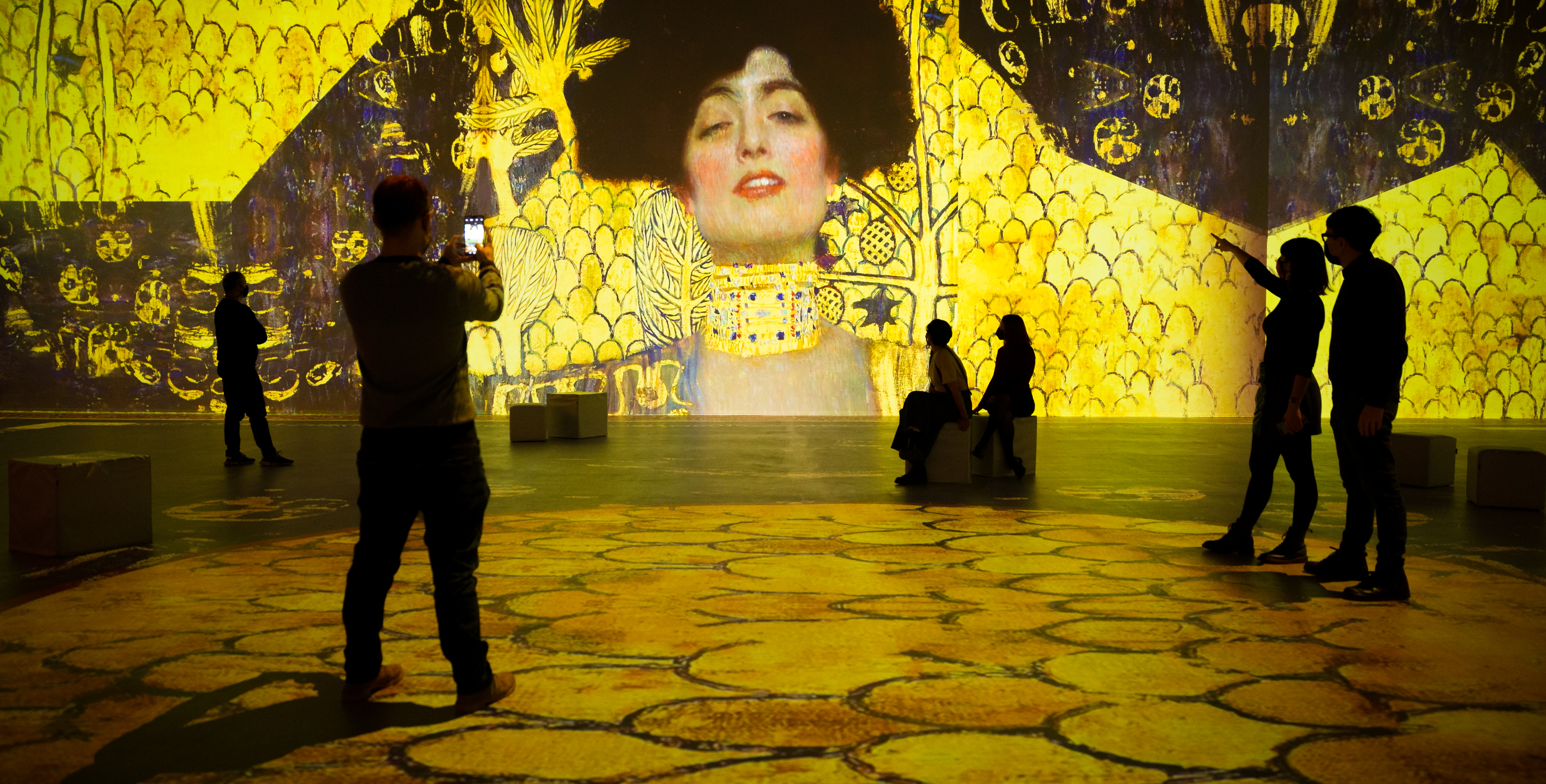 Proyecciones de gran formato, con más de 900 m2 de espacio de proyección inmersiva, experiencia 3D con gafas de realidad virtual, espacios expositivos y herramientas interactivas conforman una propuesta cultural ambiciosa y espectacular para todos los públicos que permite al espectador sentirse dentro de las pinturas y los edificios que Klimt decoró.