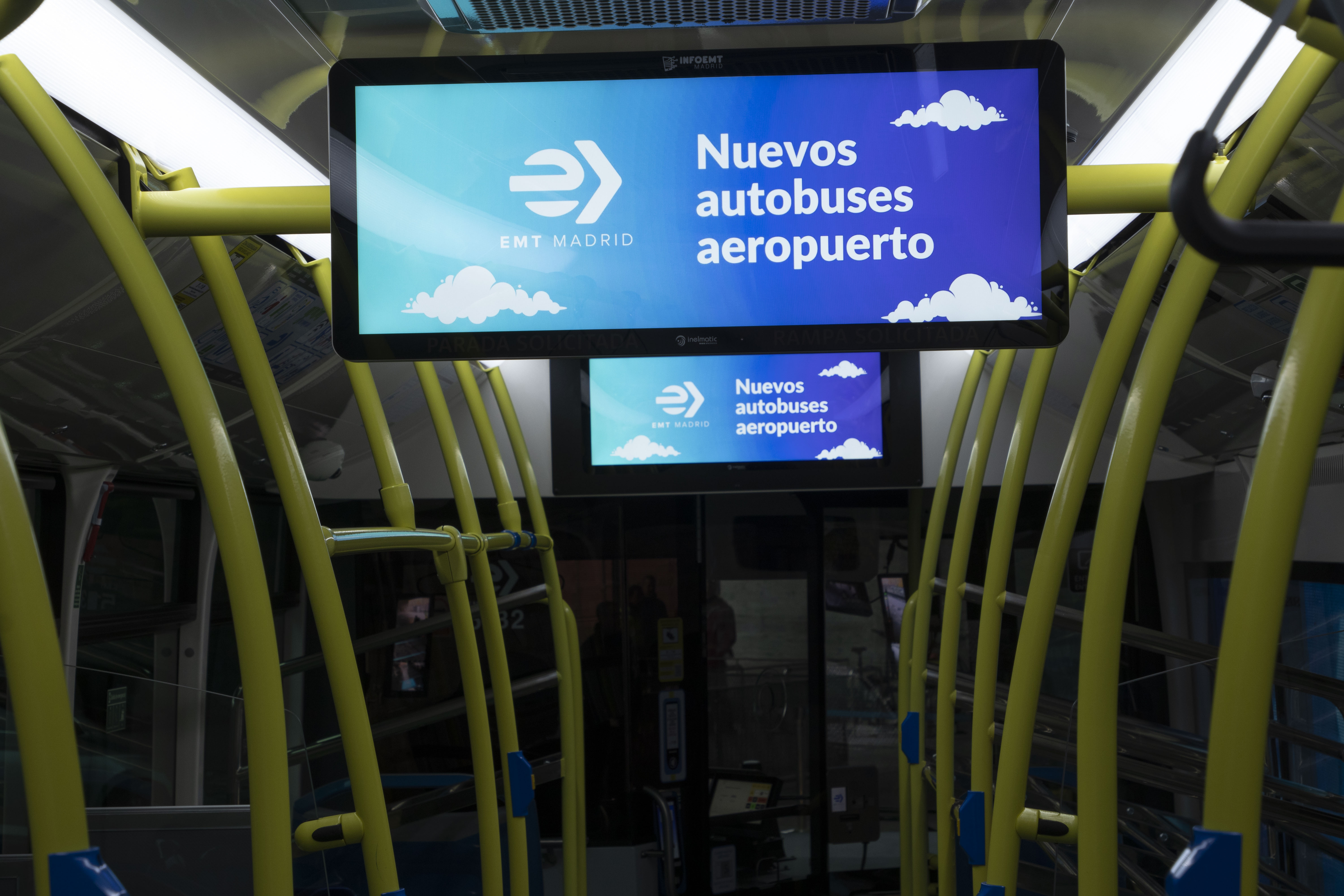 Esta nueva generación de autobuses de GNC, una flota total de 17 nuevos vehículos para conectar Madrid con el Aeropuerto Adolfo Suárez Madrid–Barajas, es un ejercicio de innovación de la Empresa Municipal de Transportes junto con el fabricante sueco Scania y el carrocero Castrosúa. Una de las novedades más llamativas es, como ha explicado Carabante, que los nuevos vehículos van dotados de pantallas LED de información y señalización exterior. Las dos primeras ventanas del lateral derecho del autobús llevan grandes pantallas que podrán ser utilizadas para anunciar el destino a los viajeros, algo de especial importancia en la línea Exprés Aeropuerto.