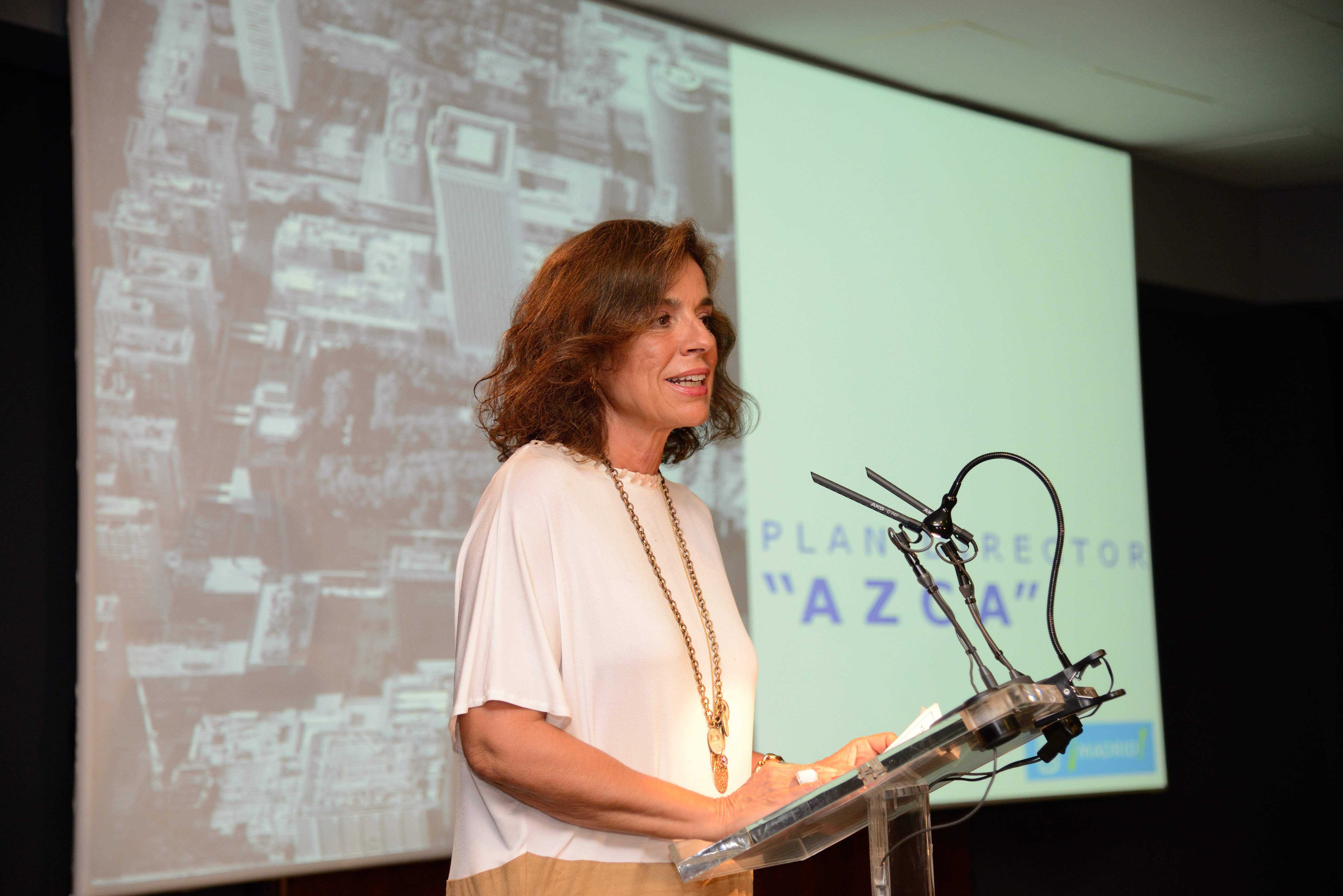 En las imágenes, la alcaldesa Ana Botella durante la presentación del Plan Director de Azca.