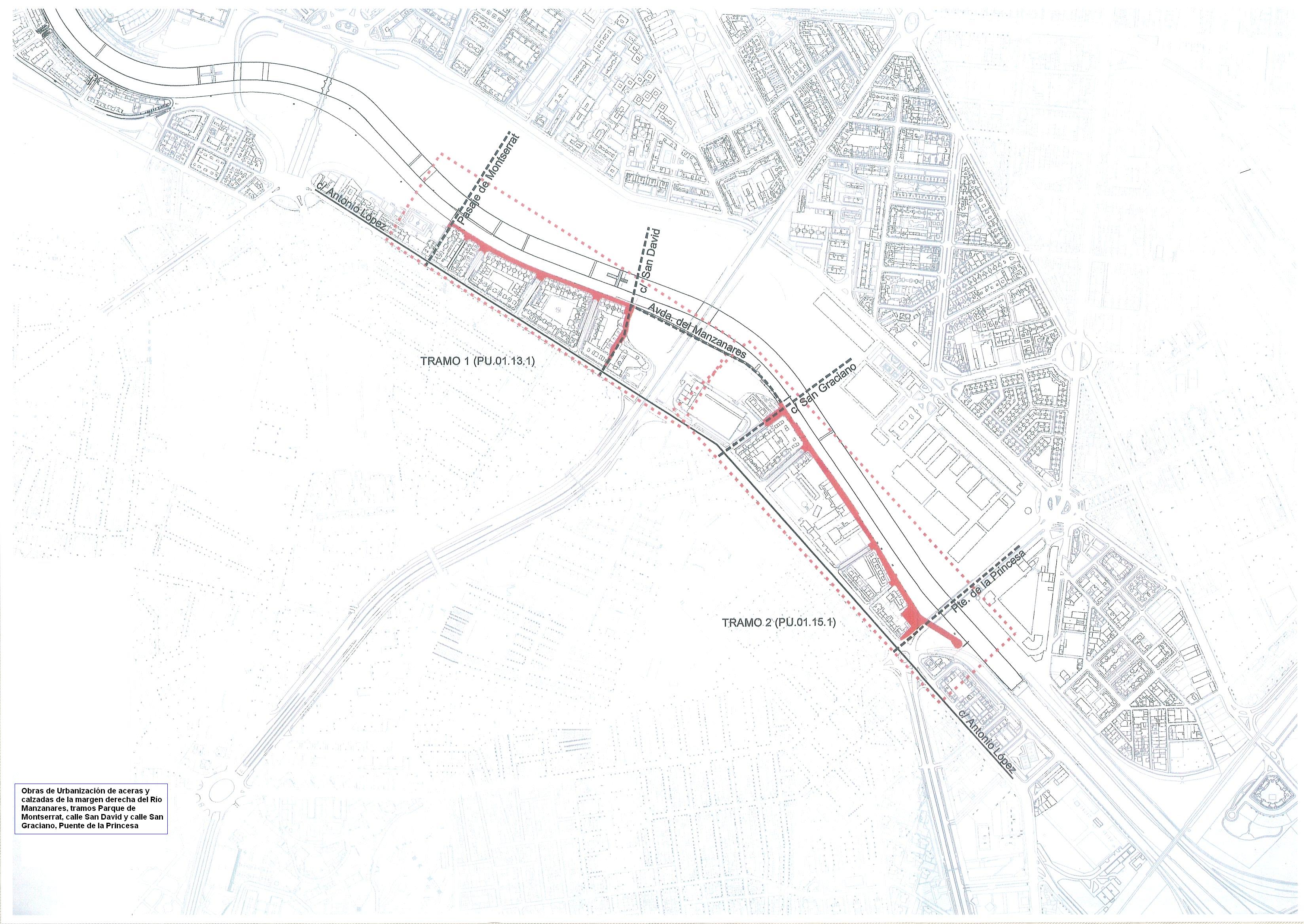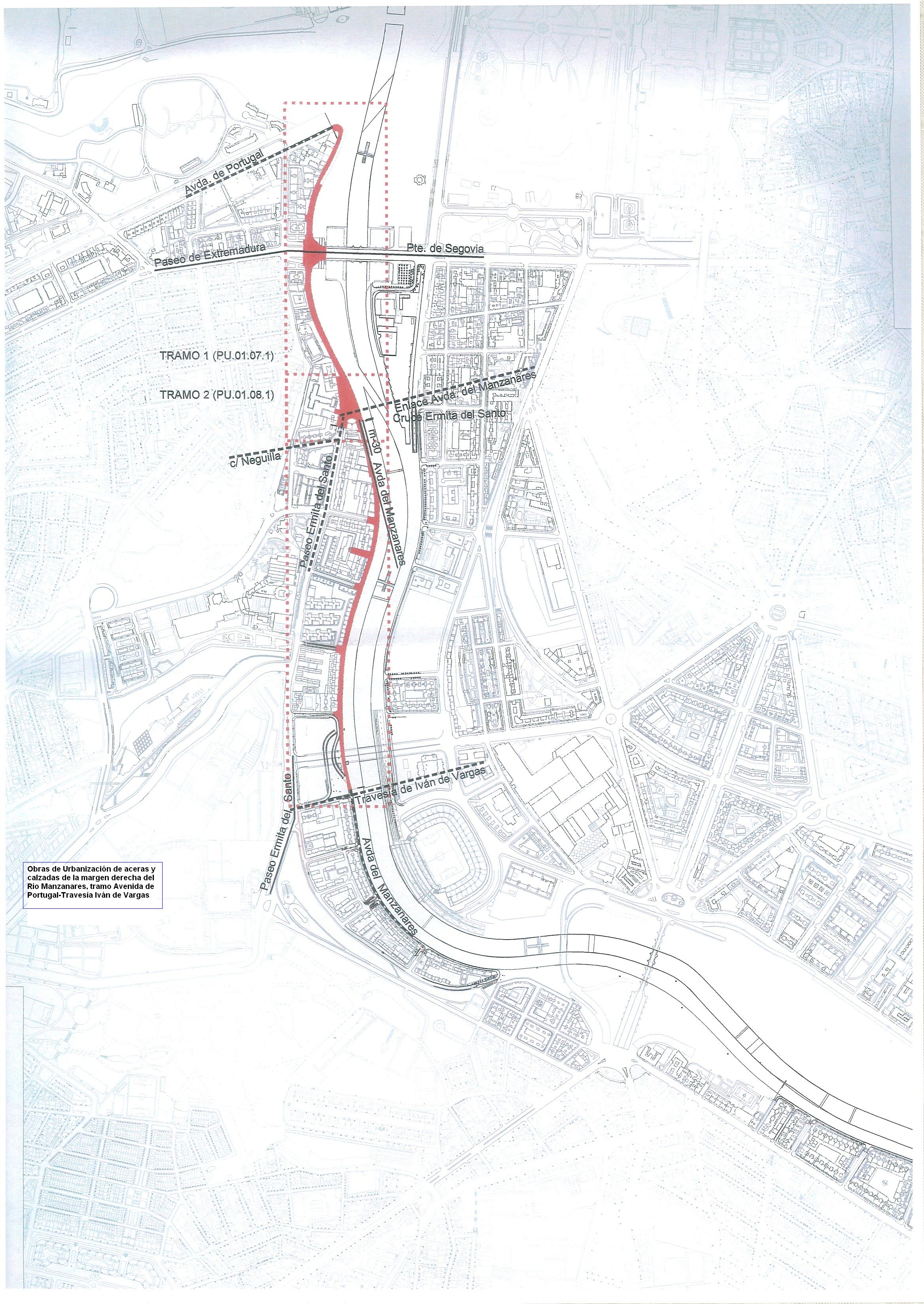 Los dos tramos de la margen derecha en los que se va a intervenir suman 2.822 metros de longitud y en ellos se invertirán casi 14 millones de euros. Se ha llevado a cabo una redistribución de los 36.532 metros cuadrados de superficie de la red viaria incluida en el ámbito de actuación para que los peatones recuperen protagonismo, destinándose el 52,1 % de la superficie a aceras. Además, se van a plantar 146 plátanos de sombra y 800 arbustos, que harán más agradable el paseo por la avenida del Manzanares y el acceso al parque del río. Los trabajos tienen un plazo de ejecución previsto de 10 meses, previéndose su conclusión en julio de 2008.