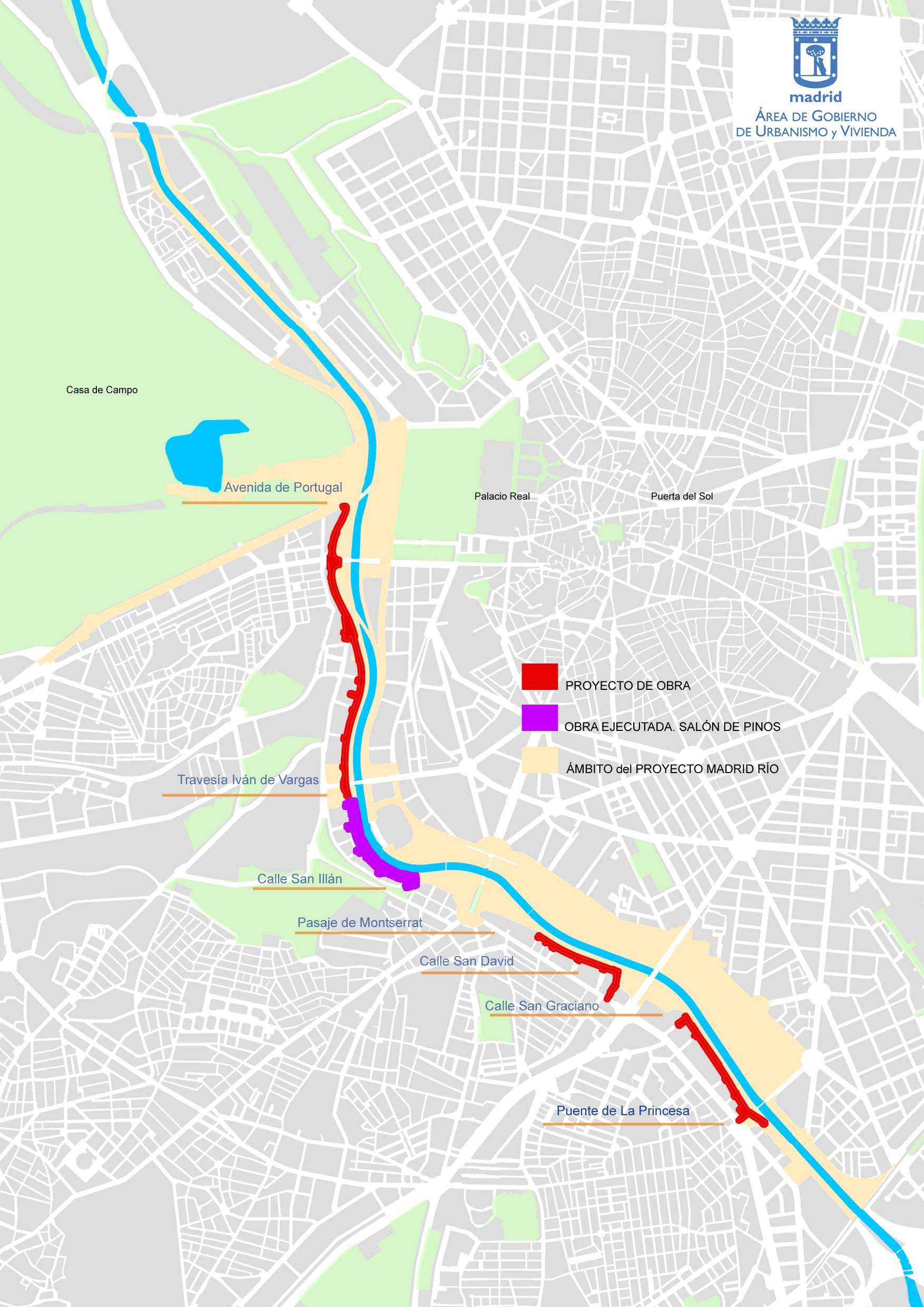 Los trabajos, que se llevarán a cabo con carácter inmediato a la finalización del soterramiento de la M-30, incrementarán la seguridad, movilidad y accesibilidad de los vecinos. Éstos verán restaurado y mejorado su entorno urbano, dando continuidad al tramo del Salón de Pinos ejecutado con anterioridad. Con estas obras quedarán tratadas todas las aceras próximas a los edificios de viviendas de la margen derecha del río, entre la avenida de Portugal y el Puente de la Princesa.