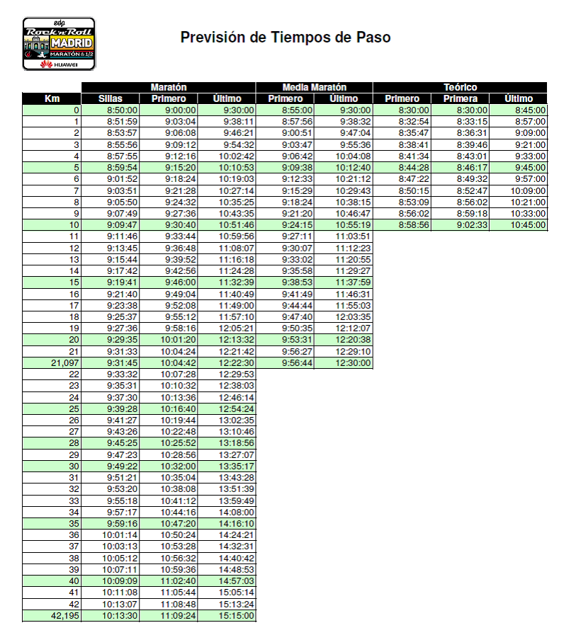 - Para la ubicación de la alfombra de corredores en los puntos kilométricos 5, 10, 15, 20, 25, 30, 35 y 40.