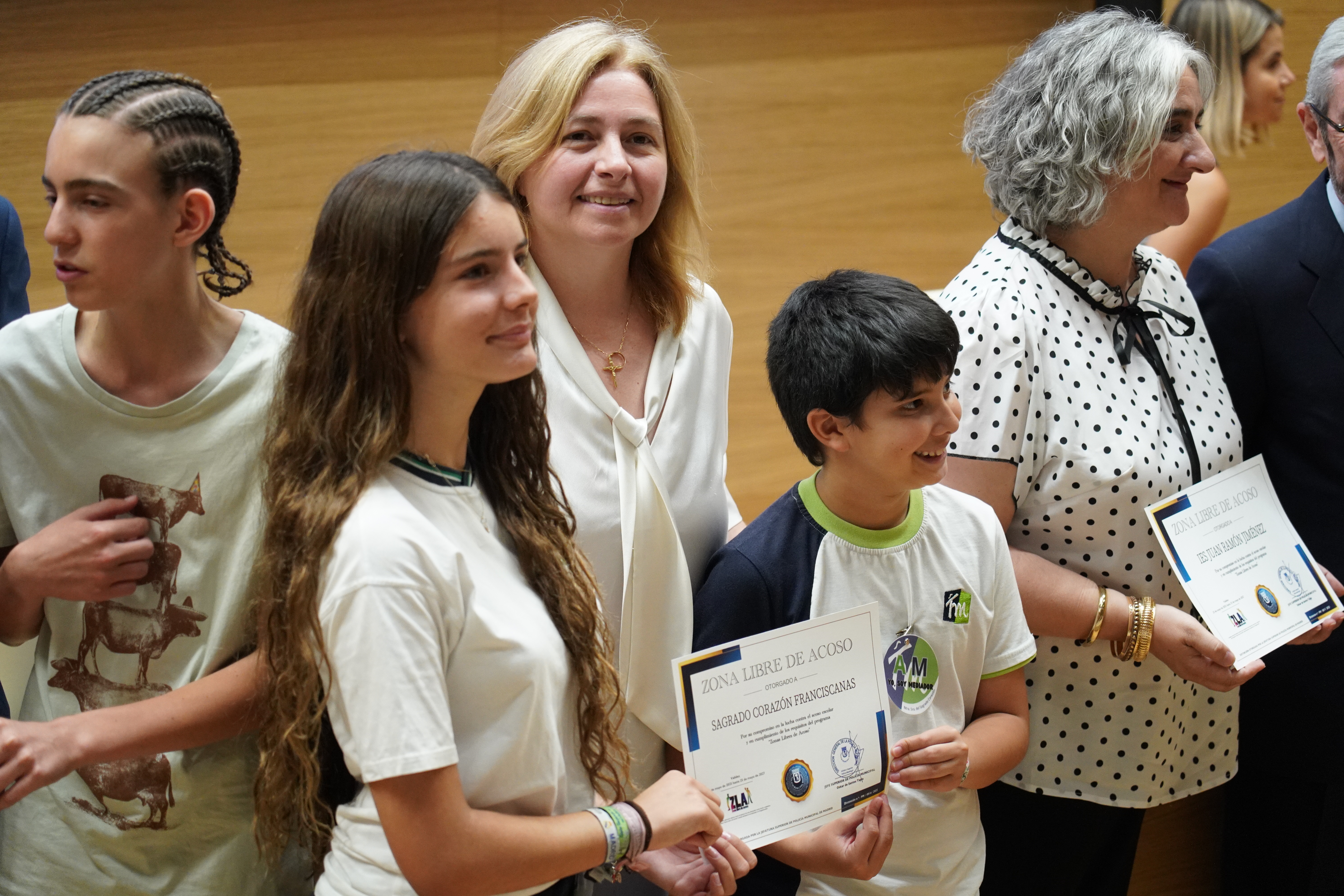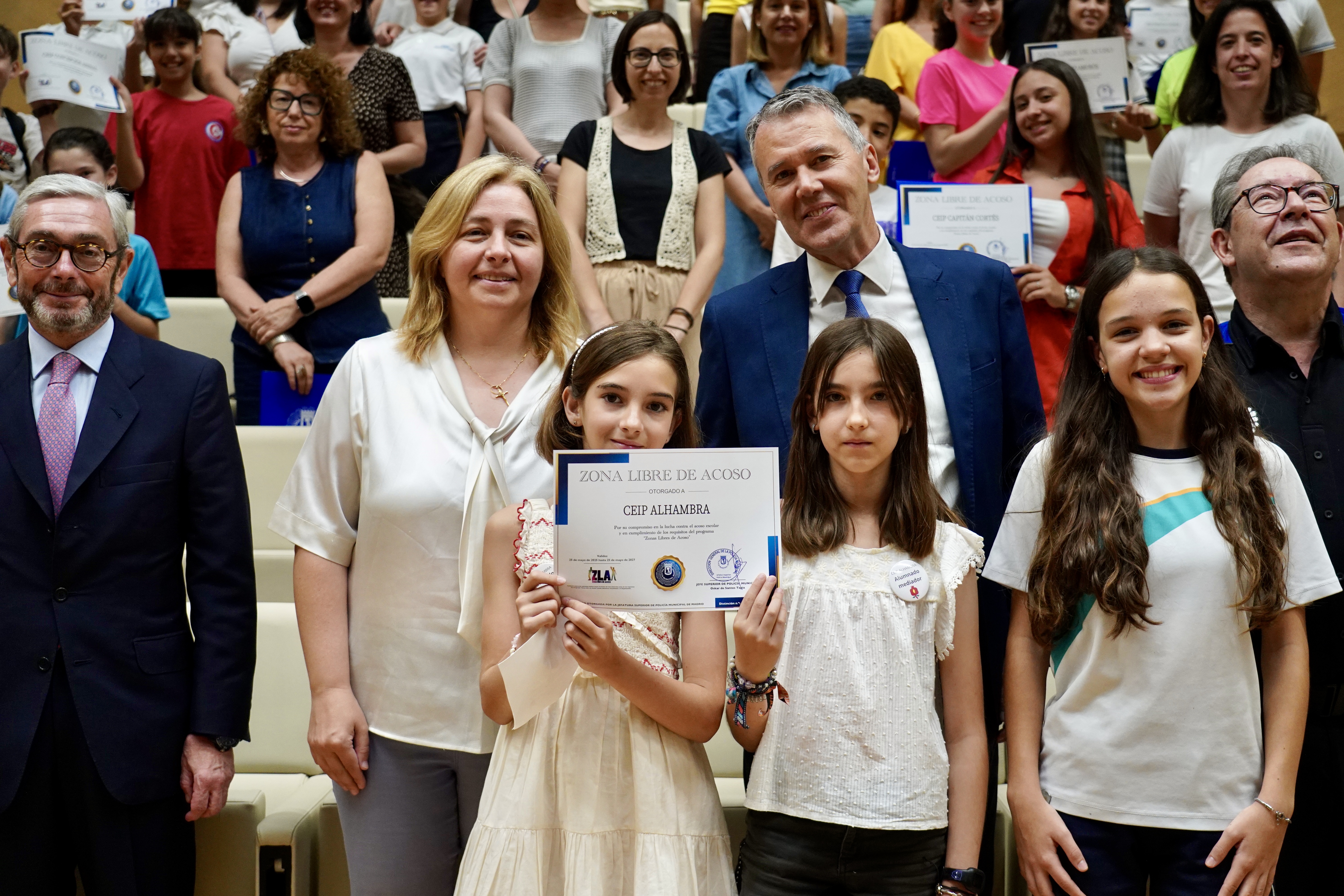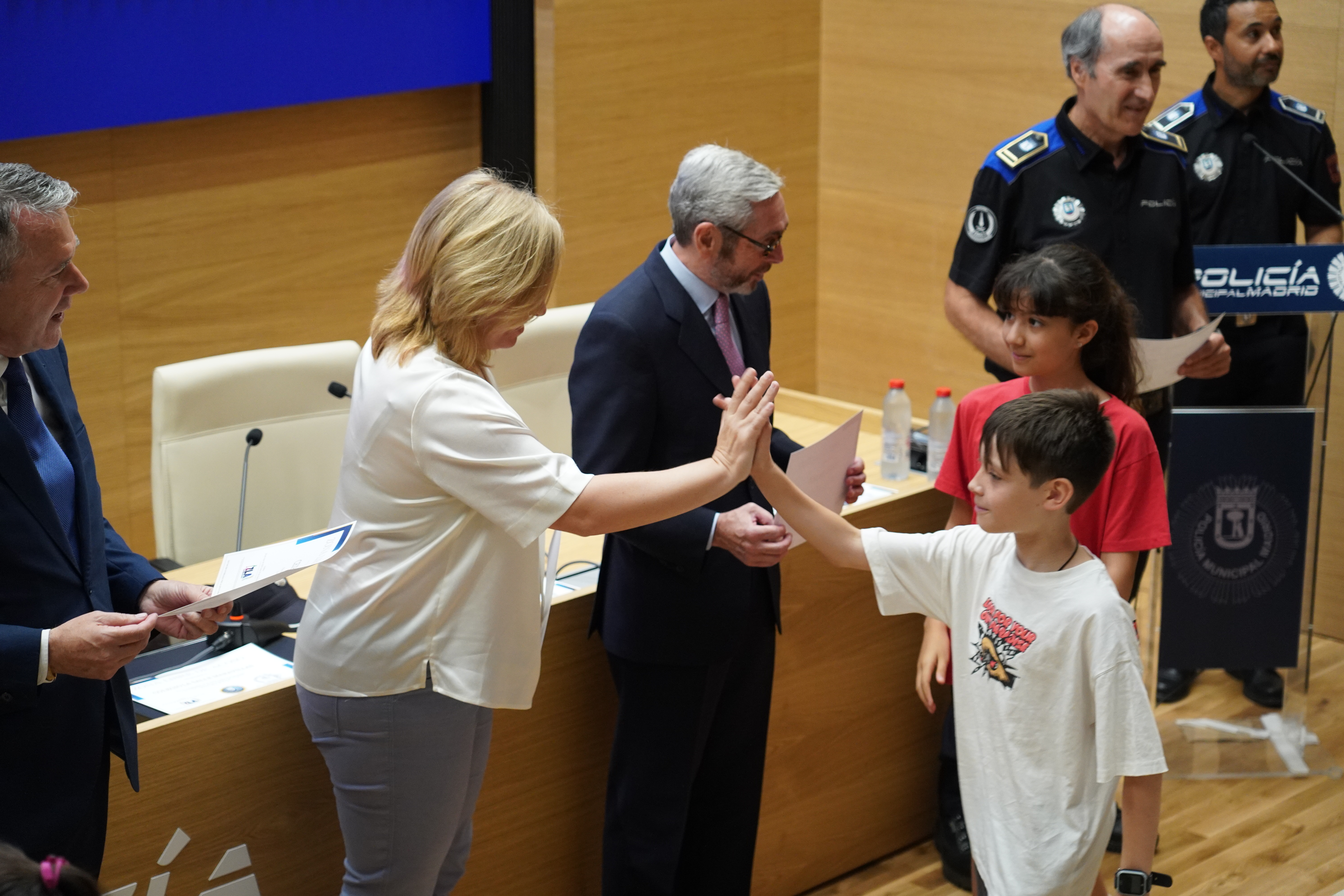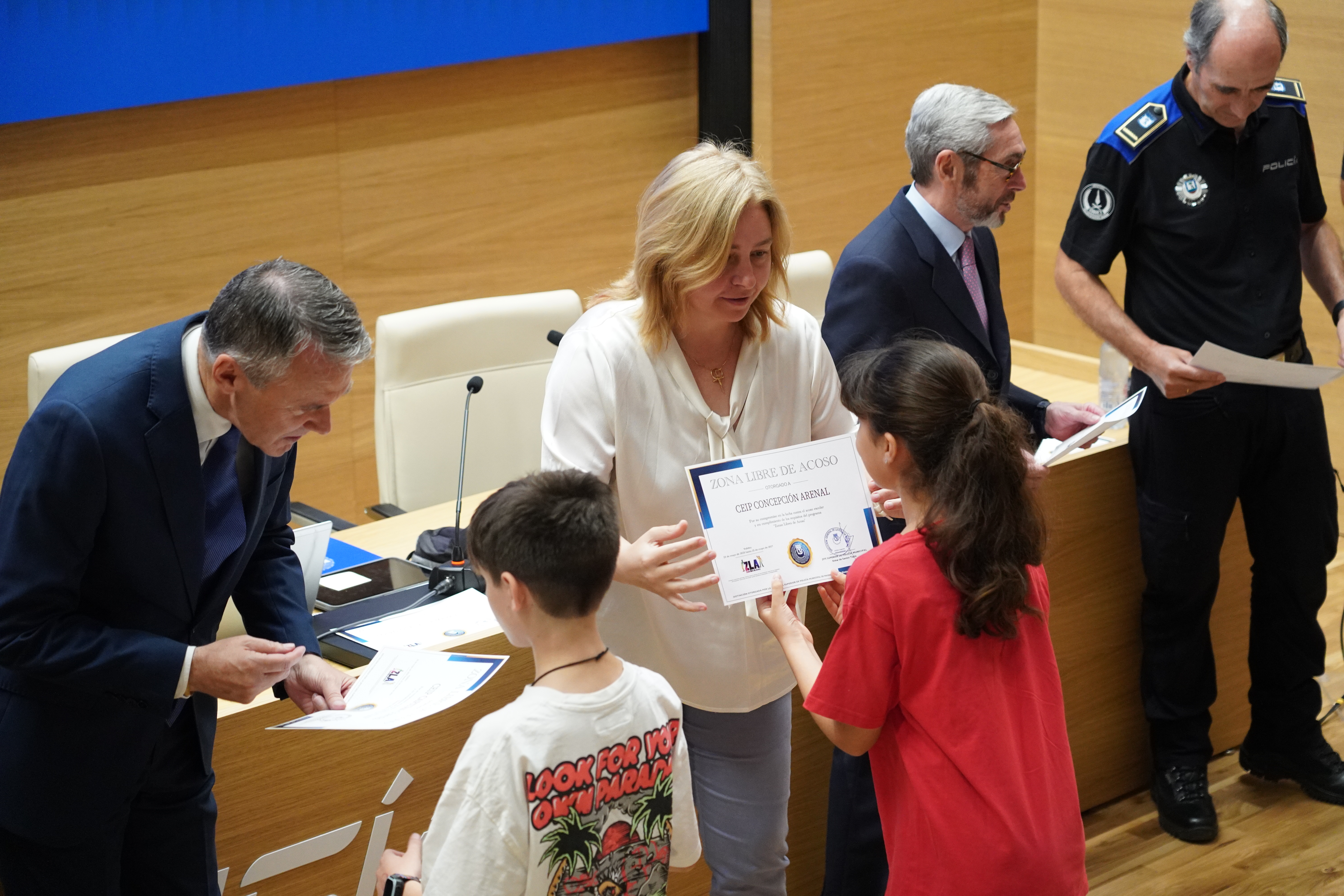La vicealcaldesa y delegada de Seguridad y Emergencias, Inma Sanz, ha presidido hoy la entrega de certificaciones como ‘zonas libres de acoso’ a los 20 centros educativos participantes en la edición de este curso (tanto públicos como concertados y privados), con 437 alumnos participantes en total, de primaria y secundaria (de 9 a 14 años). Sanz ha valorado este programa, “tan importante porque es una escuela de ciudadanía” y que “enseña que convivir no es mirar para otra parte cuando hay un conflicto, sino entender que lo que ocurre en nuestra comunidad nos afecta a todos”.