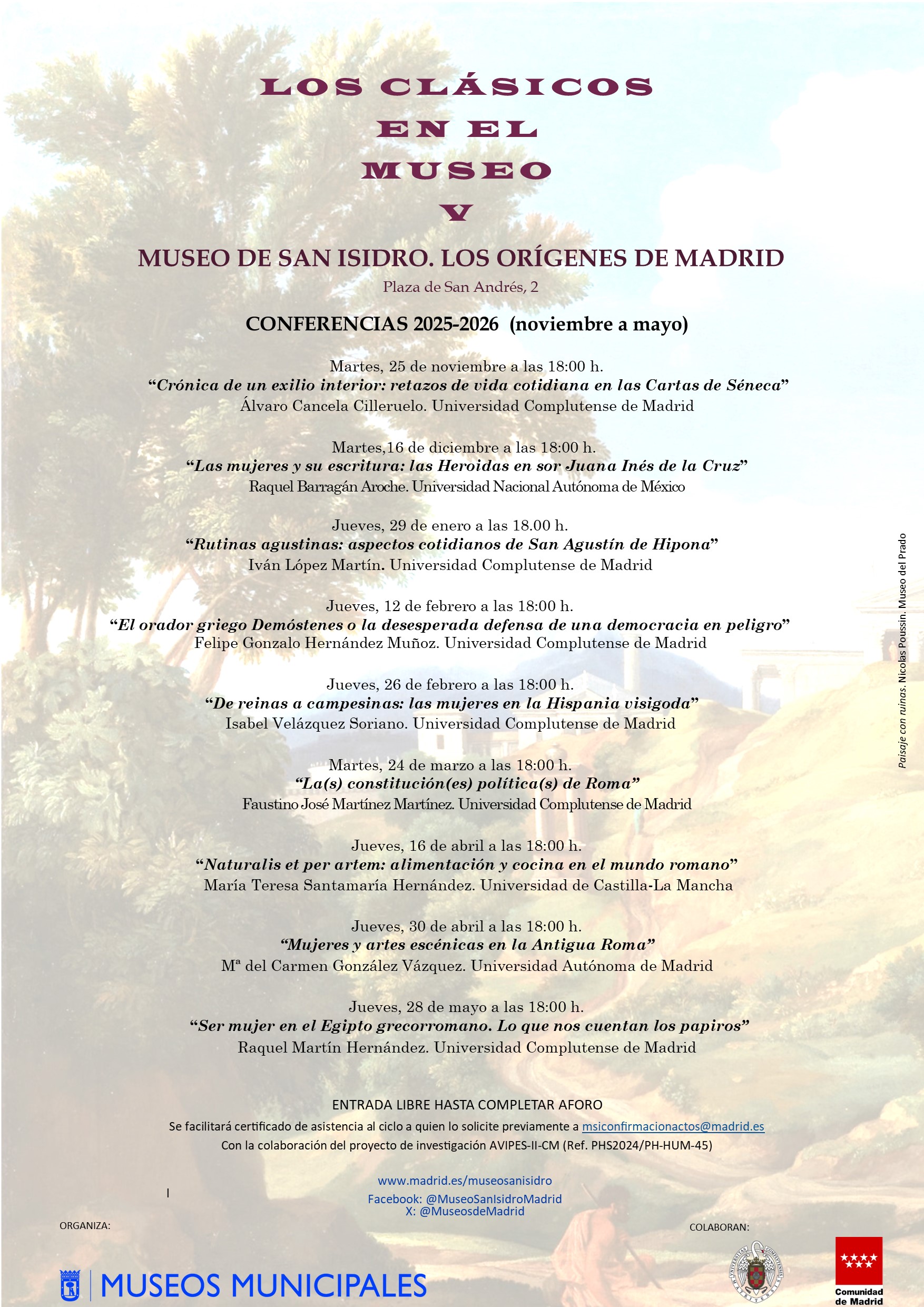 'Los Clásicos en el Museo V'. Ciclo de Conferencias. www.madrid.es 26/09/2025 25/11/2025 28/05/2026