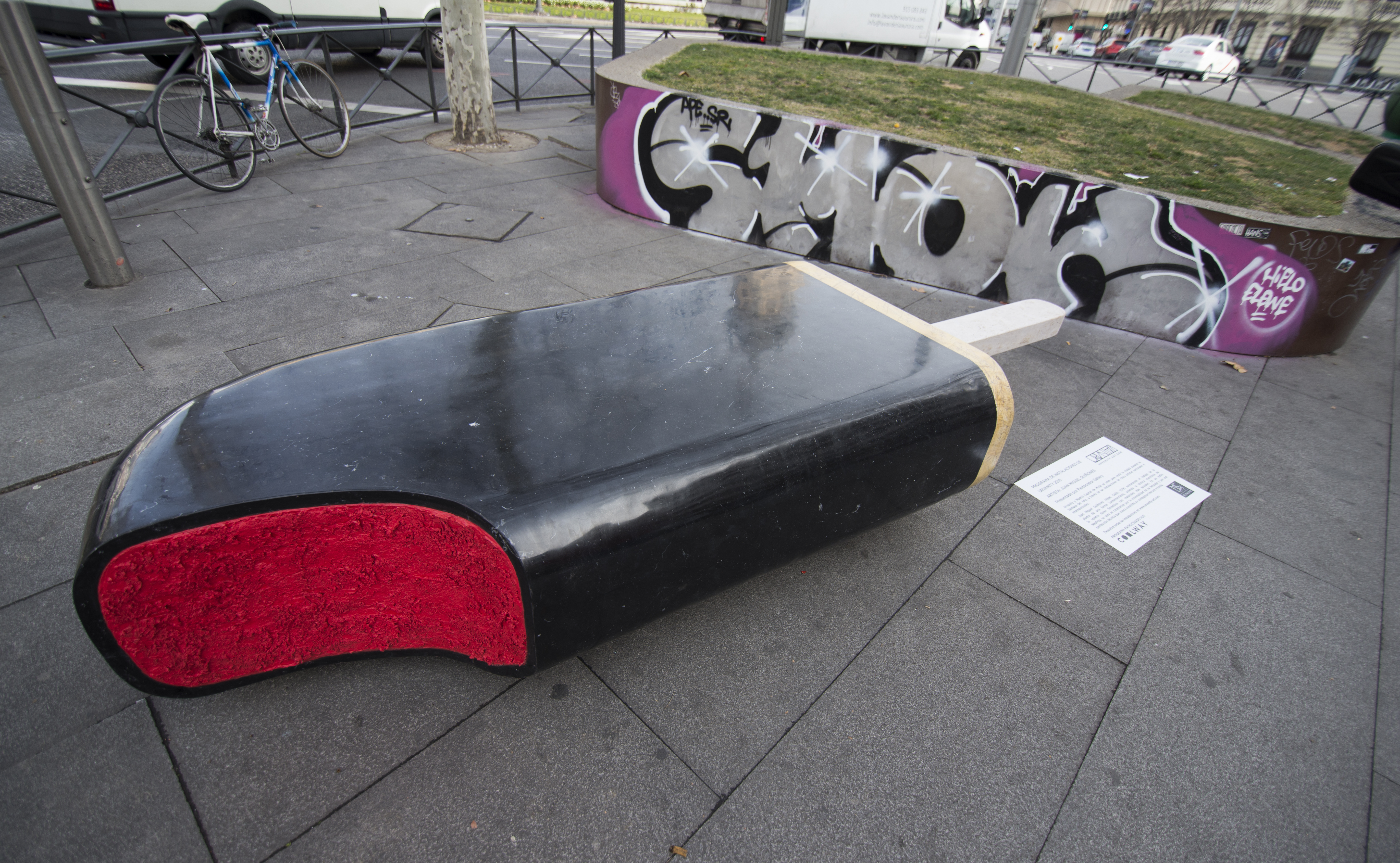 La plaza de Alonso Martínez acogerá ‘Drácula’, un polo de mármol de 2,5 metros y 2.500 kilos. Es obra del artista gaditano Juan Miguel Quiñones, quien, a través de sus obras, invita a reflexionar sobre los objetos cotidianos de una forma irónica mediante el uso de la burla y la sátira.