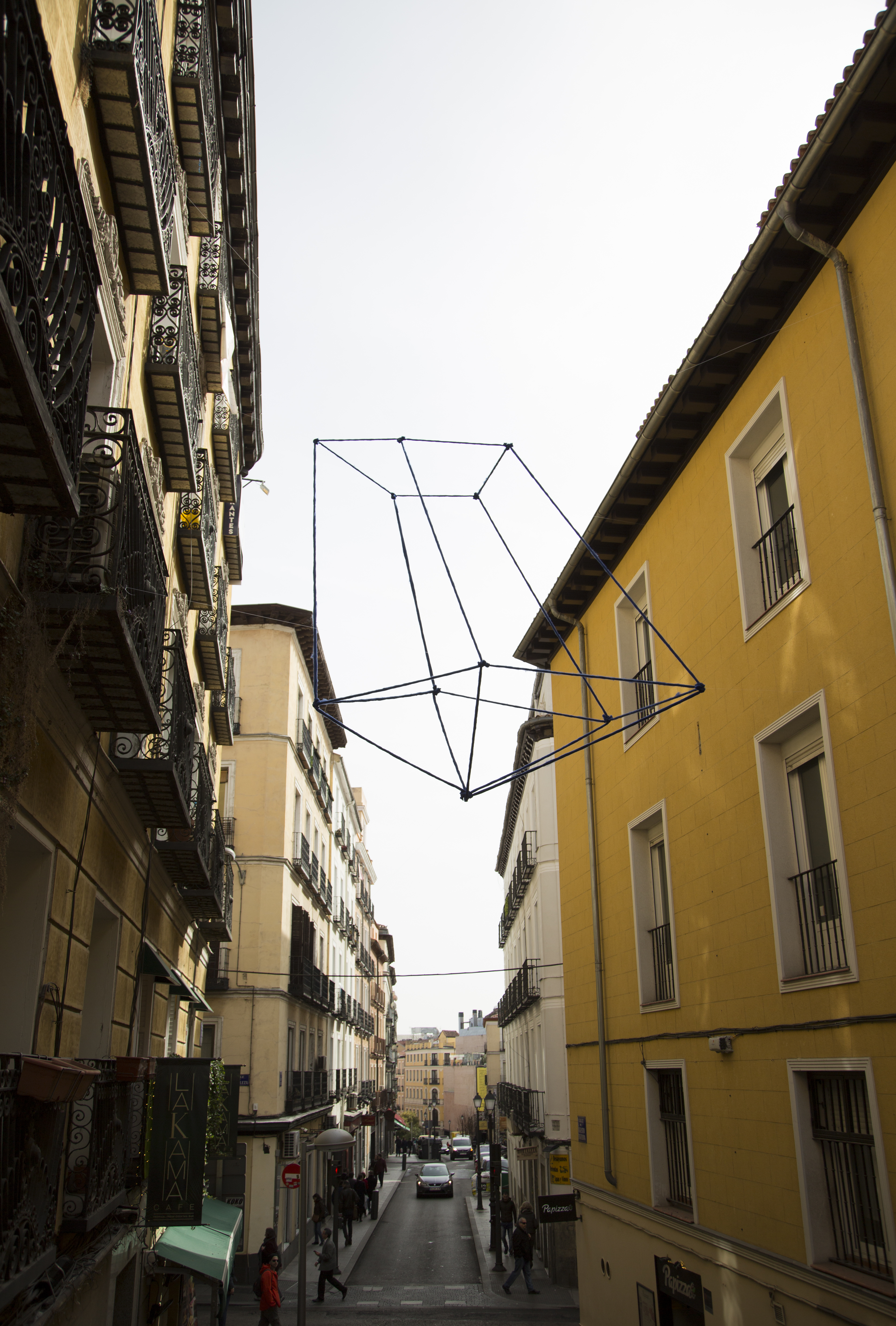 Teo Pirisi, artista, diseñador e ilustrador italiano, expone su obra sin título en la calle Augusto Figueroa. Su trabajo fusiona el graffiti tradicional y las bellas artes a través de creaciones con una gran carga visual y conceptual. Mediante su instalación a base de lana e hilo, invita a examinar la pureza y simplicidad de la vida.