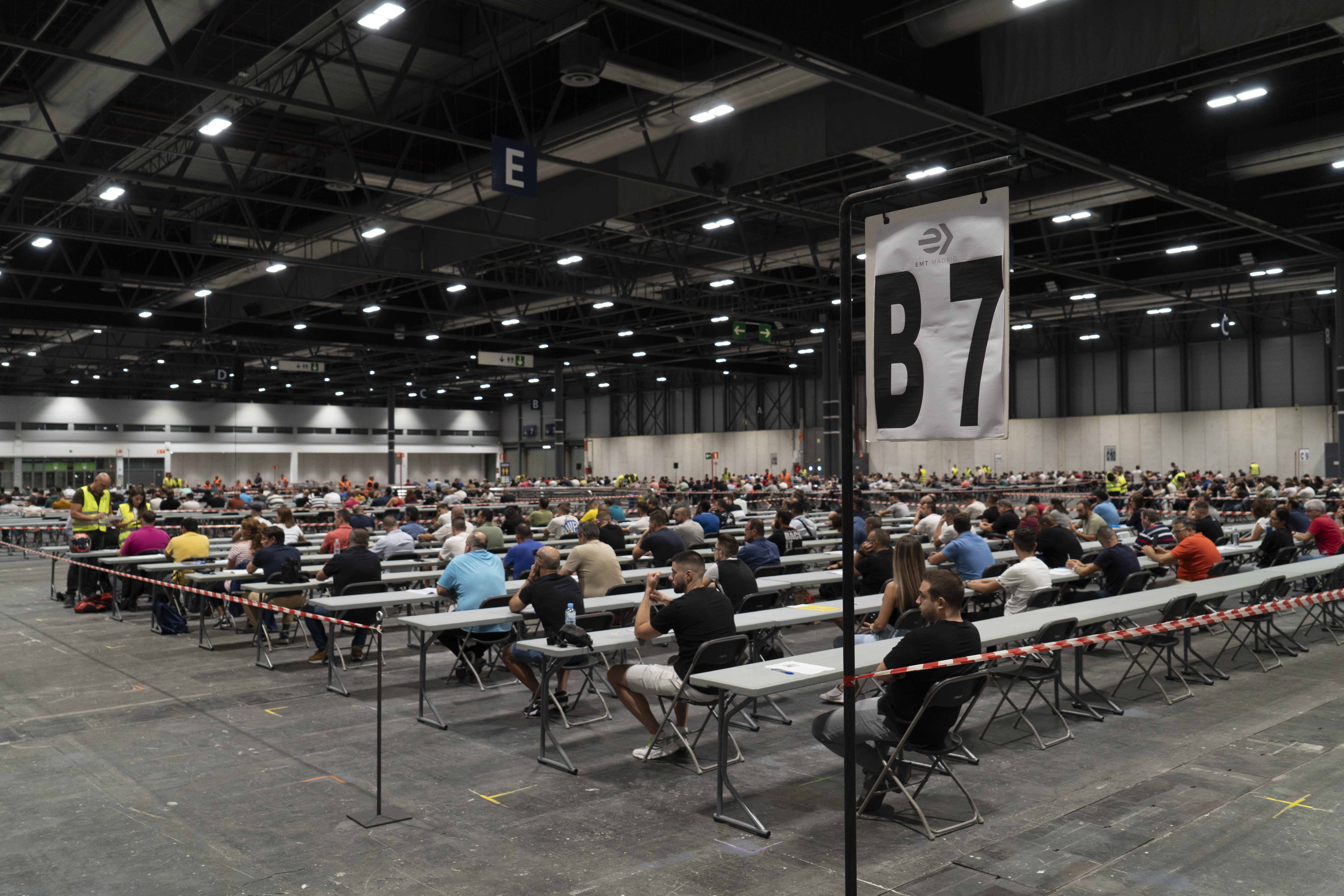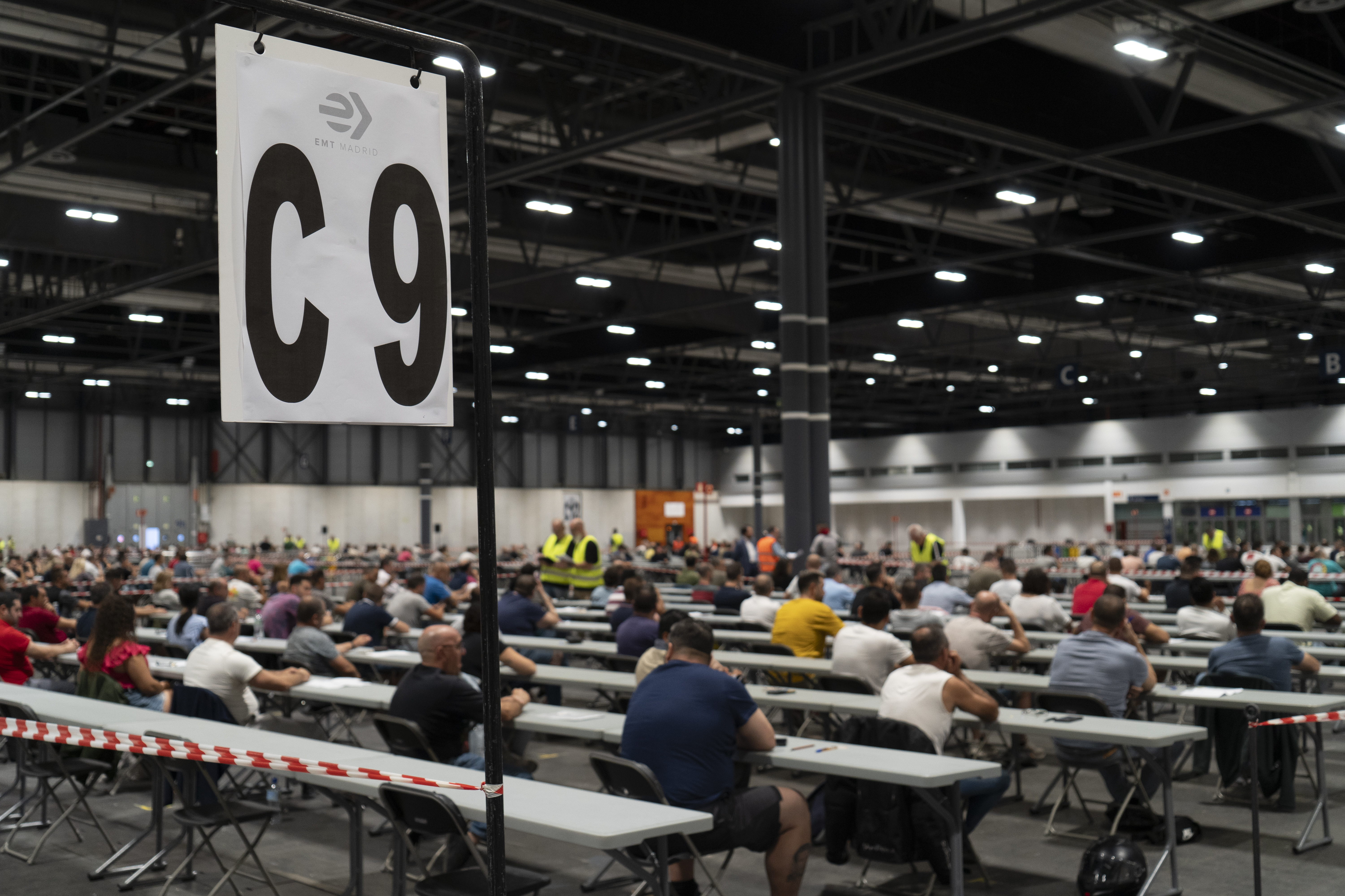 Un total de 1.374 aspirantes han sido convocados hoy al segundo examen para las nuevas plazas de conductor de autobús de la Empresa Municipal de Transportes de Madrid (EMT), celebrado en el pabellón 9 de IFEMA.