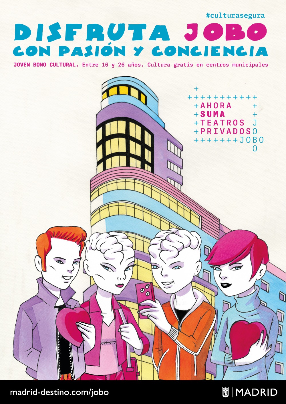 JOBO, el Joven Bono Cultural del Área de Cultura, Turismo y Deporte, contará con la participación de los teatros privados. Más de 20 de estos espacios podrán sumarse al programa que ofrece entradas gratuitas a los jóvenes en los espectáculos de seis grandes centros culturales del Ayuntamiento gestionados por Madrid Destino.