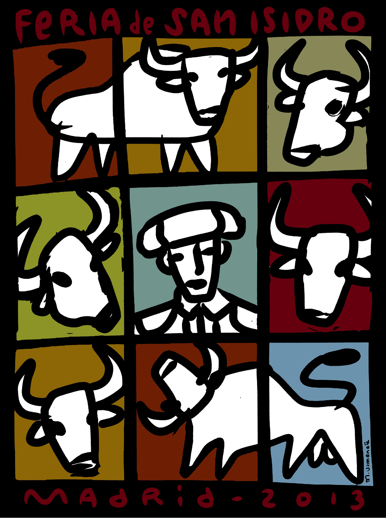 Además, y "guardando similitud con esa cuadrícula he realizado el cartel de la Feria Taurina de San isidro, que se inspira en la encerrona que protagonizará Talavante con seis victorinos en Las Ventas". El cartel taurino es una pieza más pictórica, con colores más sobrios y un enfoque más novedoso de la cartelería clásica taurina.