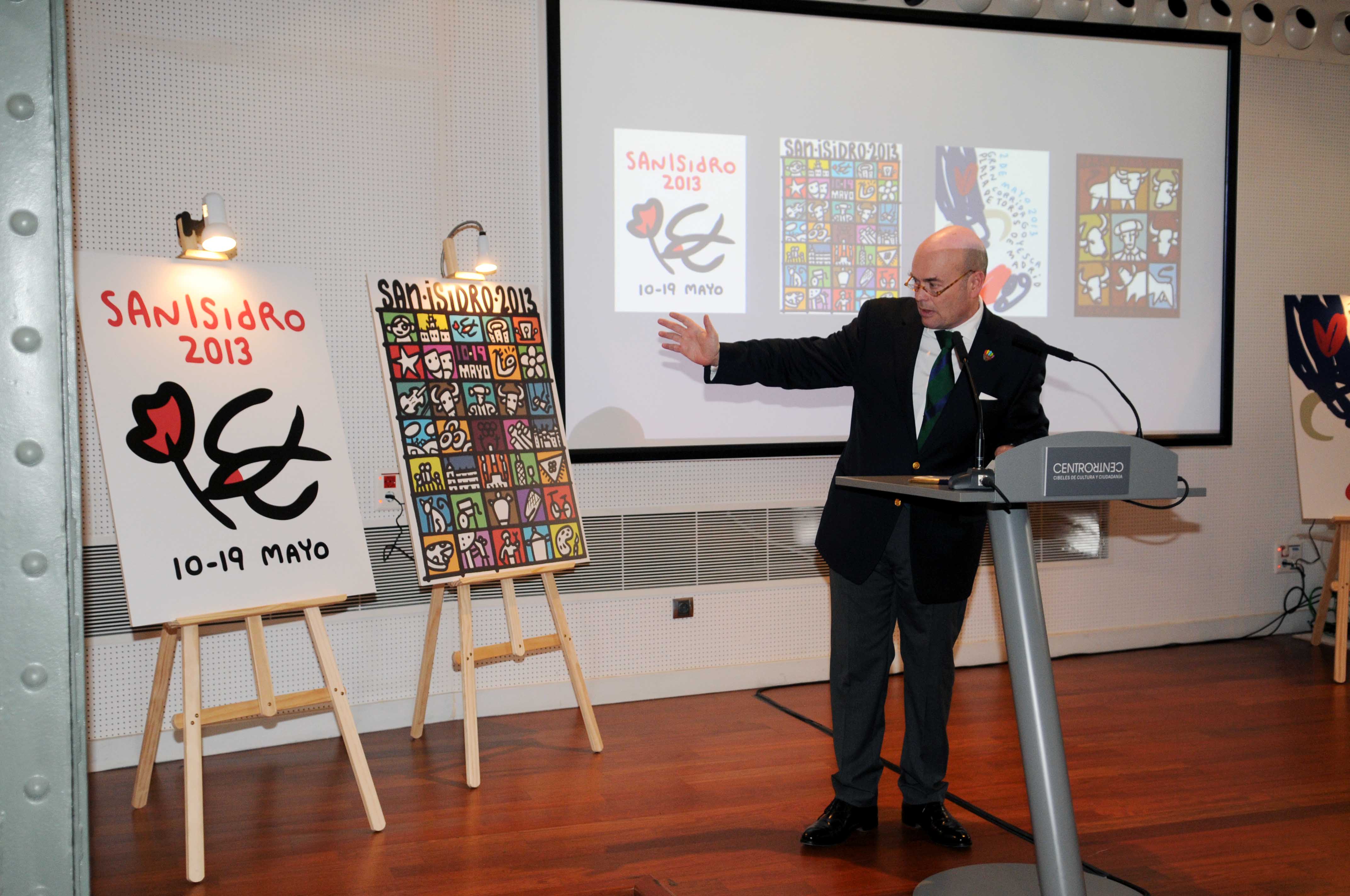 El cartel de las Fiestas de San Isidro 2013 es muy sencillo, con un trazo negro y mucho colorido, tal y como explica Mikel Urmeneta: "En él aparece todo el abanico cultural que ofrece Madrid con distintos iconos, entre los que destaca una golondrina que lleva un clavel como símbolo de las Fiestas de San Isidro, una golondrina que trae buenas noticias, novedades, la primavera y el buen tiempo".
